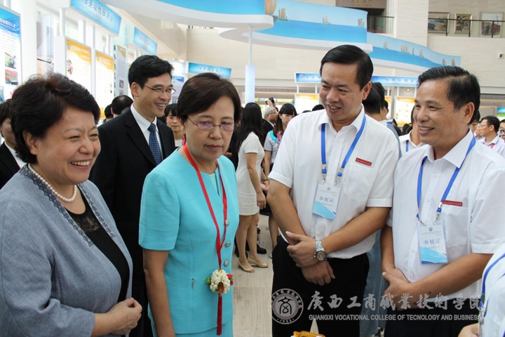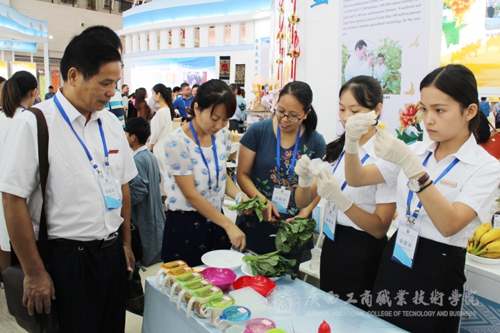 9月18-19日正式展演,我院展位上獨(dú)特的展品吸引了教育部副部長魯昕、廣西壯族自治區(qū)副主席李康、自治區(qū)高校工委書記、教育廳廳長秦斌、主管部門廣西區(qū)糧食局領(lǐng)導(dǎo)以及緬甸、馬尼拉和老撾國家教育部長等中外賓客駐足觀看。李維副院長、韋處長以及各代表隊(duì)指導(dǎo)老師熱情迎接了前來觀看的賓客,我院展示作品得到外界人士一致肯定和好評,讓外校人士更進(jìn)一步了解到我院的辦學(xué)成果,提高了我院的知名度。