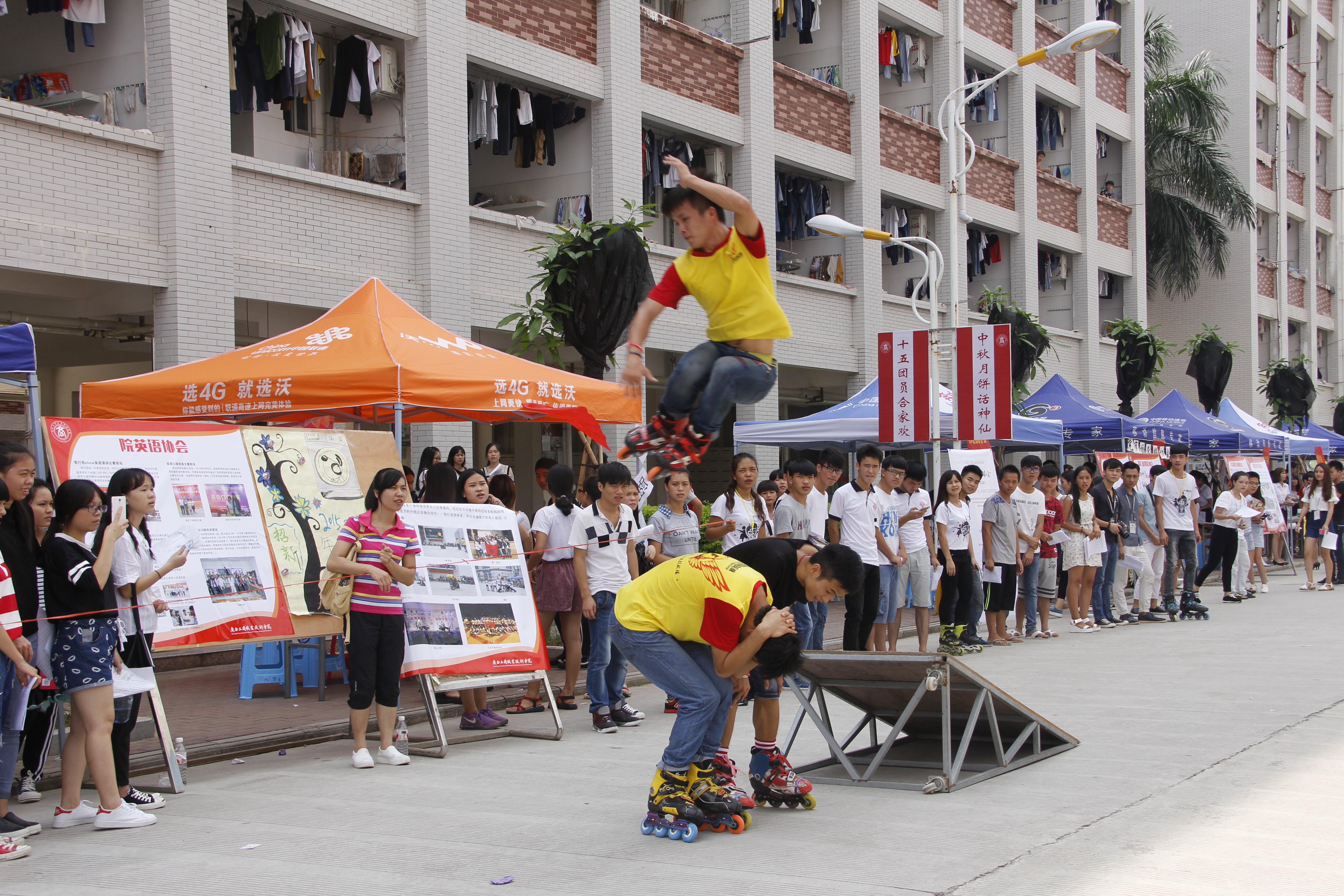 2015年9月28日12時,學院和各系共33個協(xié)會的招新活動在校園內(nèi)展開。為了能吸引到更多新生的關注和加入,各個協(xié)會更是做足噱頭:歌舞、COSPLAY、花式輪滑,在精彩的文藝表演中,招新活動熱鬧開幕。招新現(xiàn)場人山人海,熱鬧非凡,在校園里形成一道靚麗的風景線。