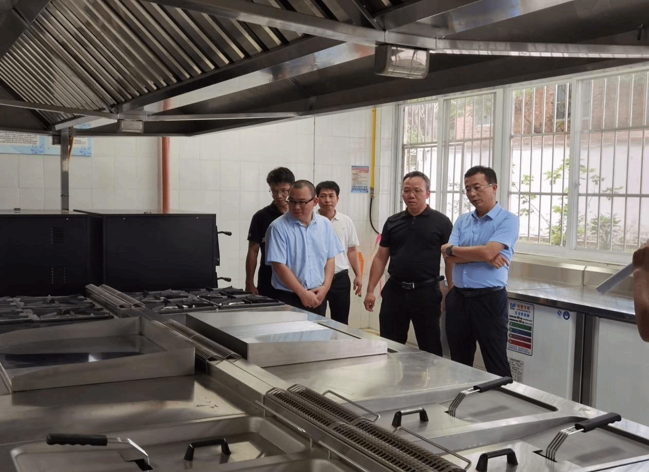 (校長(zhǎng)劉進(jìn)、副校長(zhǎng)闕勇平帶隊(duì)在中堯校區(qū)食堂進(jìn)行督查)