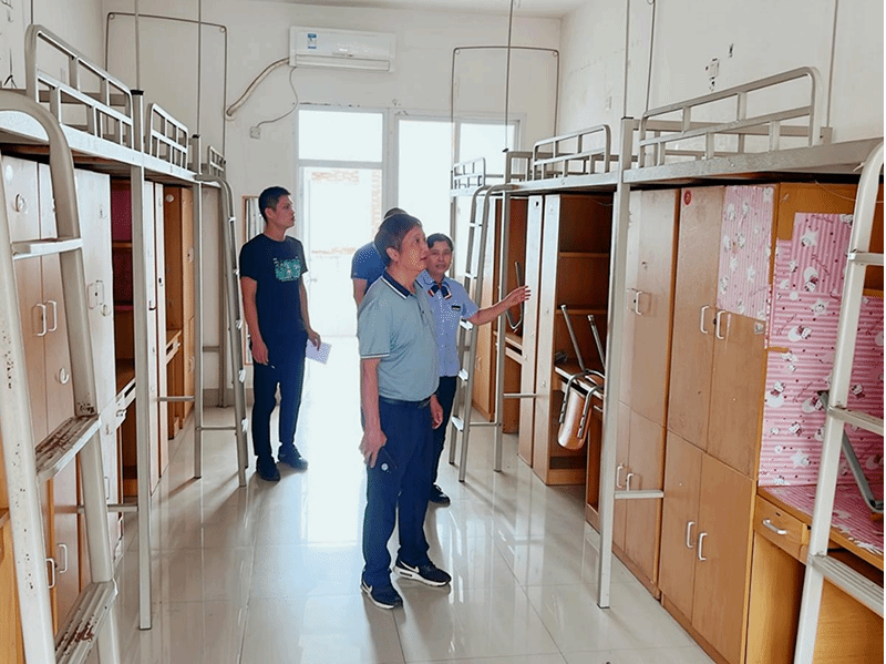 (校長(zhǎng)劉進(jìn)、副校長(zhǎng)闕勇平帶隊(duì)在中堯校區(qū)學(xué)生公寓進(jìn)行督查)