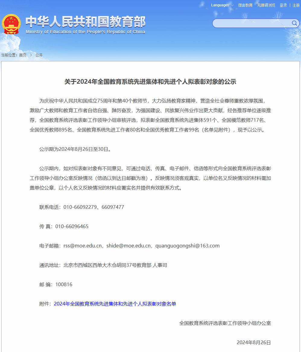 為慶祝中華人民共和國成立75周年和第40個教師節(jié),近日,教育部發(fā)布《關于2024年全國教育系統(tǒng)先進集體和先進個人擬表彰對象的公示》,其中包括全國教育系統(tǒng)先進集體、全國模范教師、全國優(yōu)秀教師、全國教育系統(tǒng)先進工作者、全國優(yōu)秀教育工作者五項,我校信息與設計學院教師朱明秀獲評全國優(yōu)秀教師,這是我校教師首次獲此榮譽。