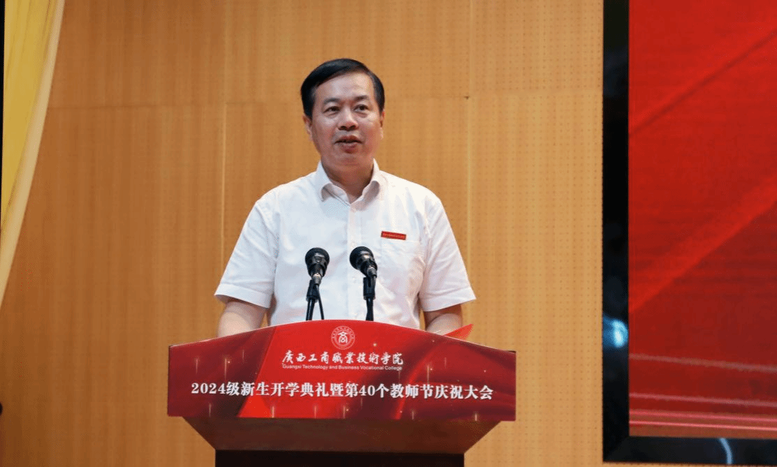 學(xué)校黨委副書記、校長劉進在大會上致辭,向8300多名2024級新生表示熱烈的歡迎,向全體教職工致以節(jié)日的問候和崇高的敬意。他勉勵同學(xué)們一要堅定理想信念,爭做信念如磐的有志青年,勇?lián)鐣?zé)任,做信仰堅定的接班人;二要勤奮學(xué)習(xí),爭做本領(lǐng)過硬的有識青年,不斷拓寬知識領(lǐng)域,積極參加豐富多彩的校園活動,努力成為學(xué)有所長、業(yè)有所專、技有所精的廣商院人;三要敢于開拓創(chuàng)新,爭做篤行實干的有為青年,勇于迎接新挑戰(zhàn),善于開辟新領(lǐng)域,心有大我,在協(xié)作奮進中彰顯作為。