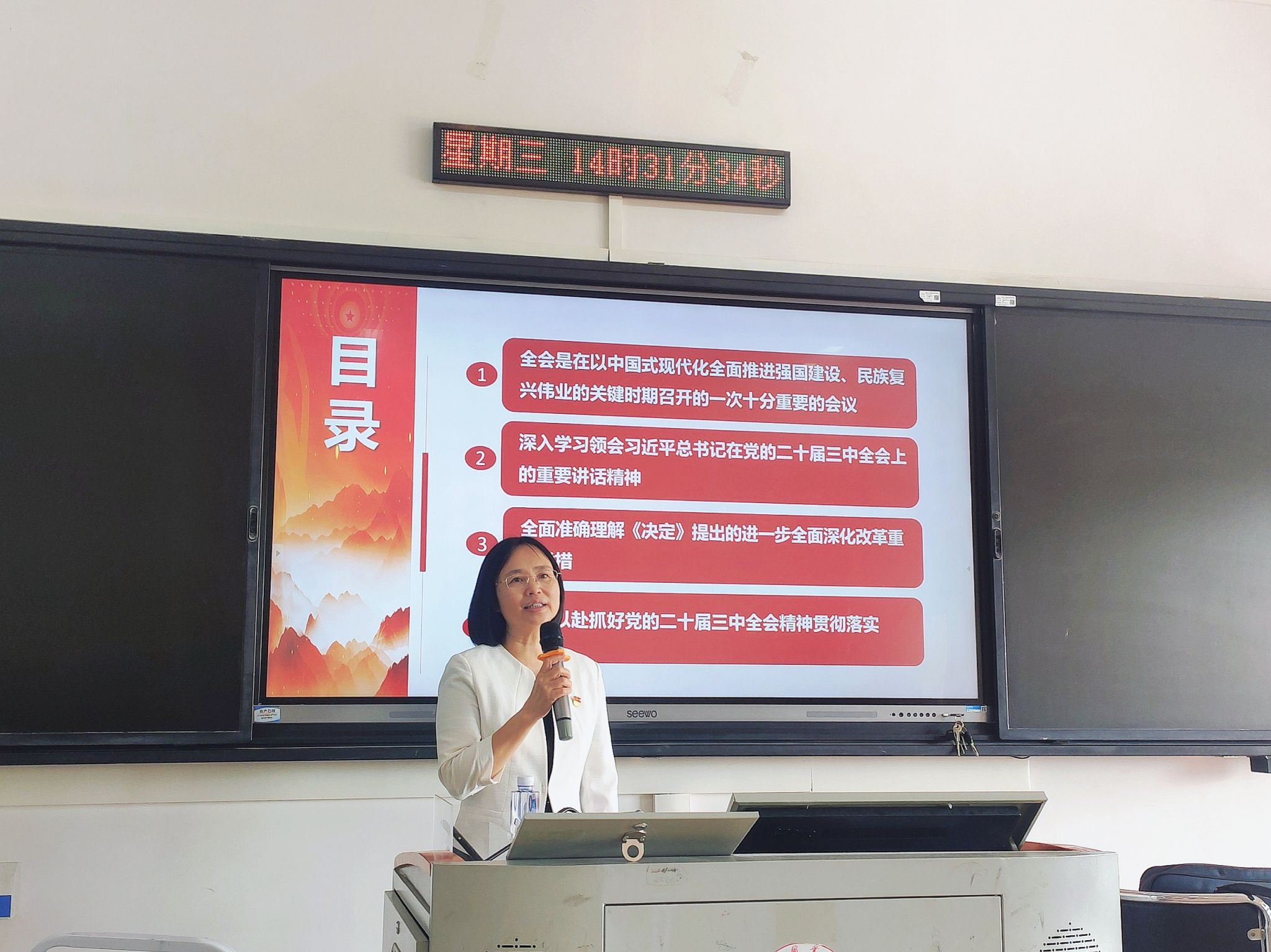 宣講中,韋云鳳詳細(xì)解讀了習(xí)近平總書記在黨的二十屆三中全會(huì)上的重要講話精神。她指出,習(xí)近平總書記的重要講話高屋建瓴、思想深邃,為我們進(jìn)一步深化改革指明了前進(jìn)方向、提供了根本遵循。全體教師們要深入學(xué)習(xí)領(lǐng)會(huì)講話精神,準(zhǔn)確把握新時(shí)代全面深化改革的內(nèi)涵和要求,切實(shí)增強(qiáng)改革的責(zé)任感和使命感。