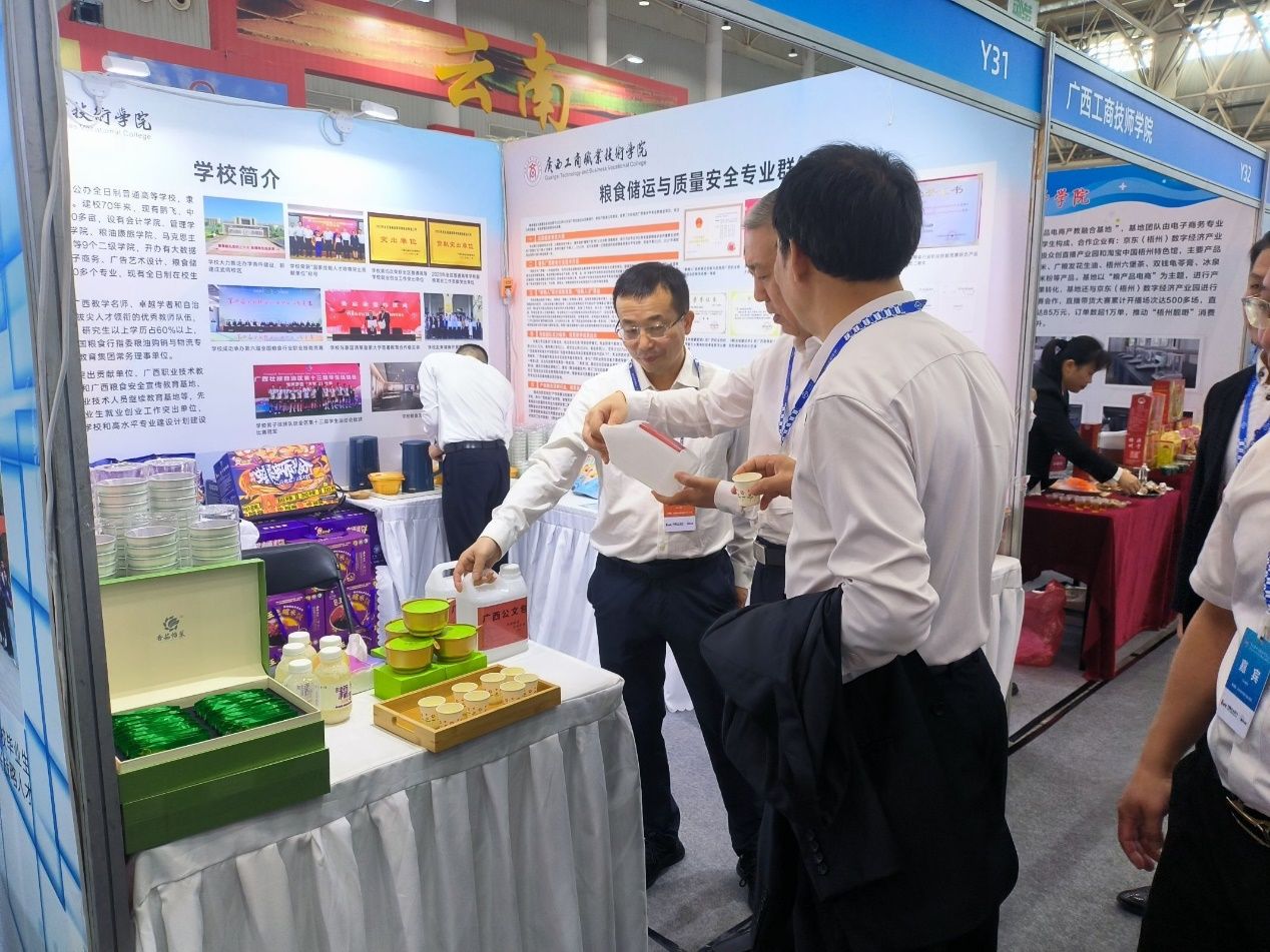 在涉糧院校人才成果展中,我校展位成為了交易大會的熱議焦點。展區(qū)以“創(chuàng)新驅動,服務糧食安全”為主題,全面展示了我校在糧食科學、農(nóng)業(yè)技術和食品安全等領域的研究成果。劉進校長在展位上接待了眾多來訪者,詳細介紹我校在校企合作、社會服務方面取得的成果,其中由我校李影球專家工作室制定的《預制五色糯米飯加工技術規(guī)程》團體標準獲得了廣西首屆高質量團體標準科學技術獎。