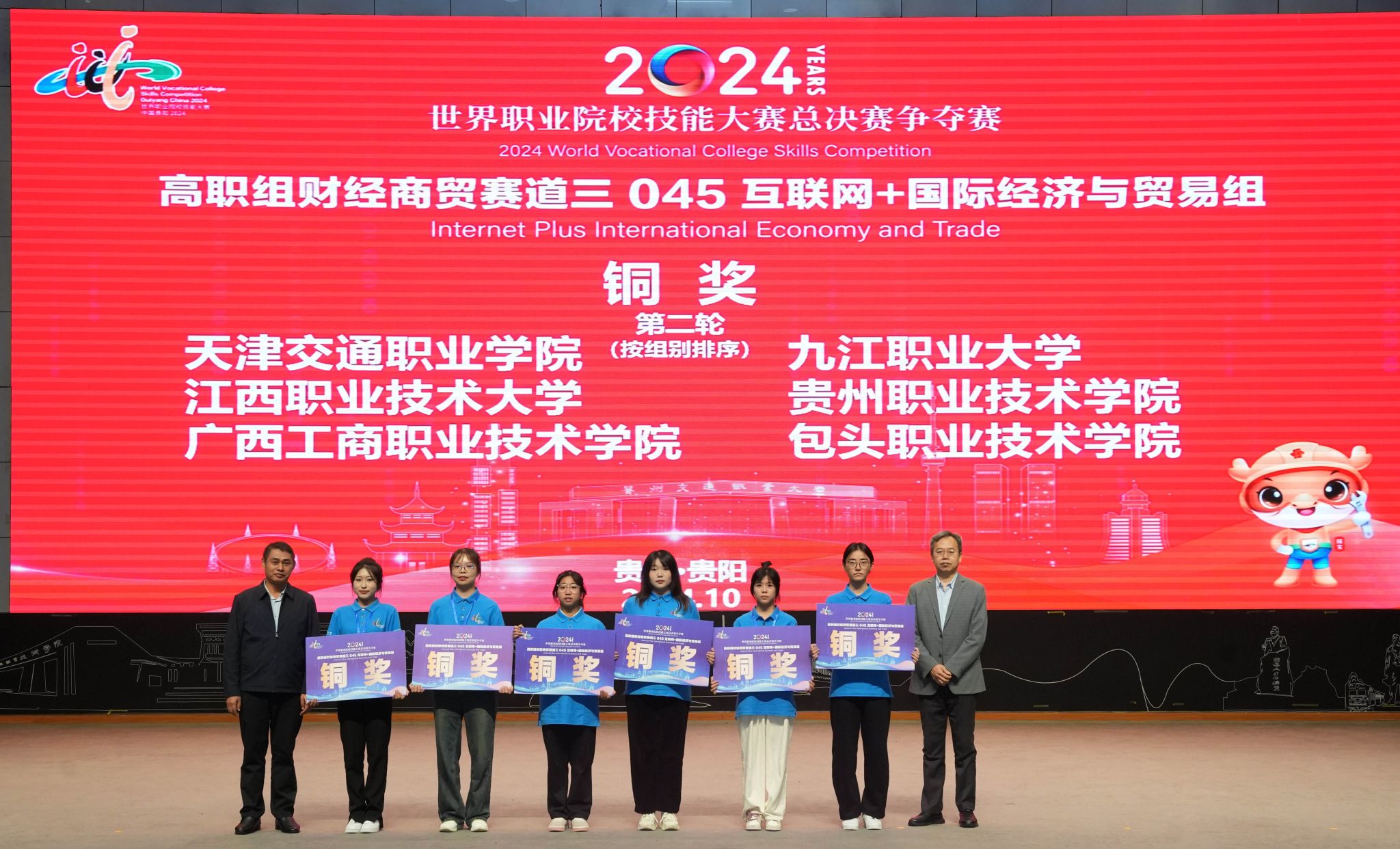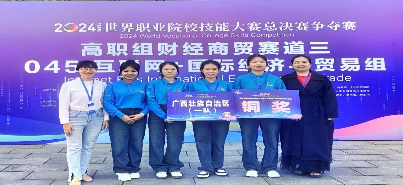10月27日,2024年世界職業(yè)院校技能大賽總決賽爭奪賽(高職組)財經(jīng)商貿(mào)賽道“互聯(lián)網(wǎng)+國際經(jīng)濟(jì)與貿(mào)易”賽項(xiàng)在貴州交通職業(yè)大學(xué)開賽,來自全國61支隊(duì)伍的237名選手展開激烈角逐。我校參賽隊(duì)代表廣西參賽。由我校經(jīng)貿(mào)學(xué)院左瑞瑞、陳淑芬擔(dān)任指導(dǎo)教師,劉菲菲、劉雨宣、梁清睿、王潔4名同學(xué)組成的參賽團(tuán)隊(duì),在本次比賽中表現(xiàn)出色,獲得了2024年世界職業(yè)院校技能大賽總決賽爭奪賽銅獎。這也是我校在“互聯(lián)網(wǎng)+國際經(jīng)濟(jì)與貿(mào)易”賽項(xiàng)中首次獲得世界職業(yè)院校技能大賽獎項(xiàng)。