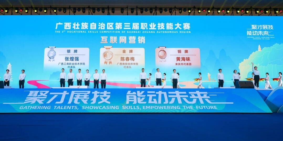 技能人才是支撐中國(guó)制造、中國(guó)創(chuàng)造的重要力量。11月8日-10日,廣西壯族自治區(qū)第三屆職業(yè)技能大賽在桂林國(guó)際會(huì)展中心盛大開賽。來(lái)自各大企業(yè)的技能工匠,以及來(lái)自職業(yè)院校的技能精英齊聚一堂,展開技能大比拼。在高手云集的賽場(chǎng)上,我校教師張煌強(qiáng)教授沉著應(yīng)戰(zhàn),憑借精湛的專業(yè)技能和優(yōu)良的表現(xiàn),在競(jìng)爭(zhēng)激烈的互聯(lián)網(wǎng)營(yíng)銷賽項(xiàng)中,一路過(guò)關(guān)斬將,最終榮獲大賽銀獎(jiǎng)的優(yōu)異成績(jī),按參賽文件規(guī)定還將被授予“廣西技術(shù)能手”的光榮稱號(hào),為我校贏得又一項(xiàng)含金量較高的成果,展現(xiàn)了我校職業(yè)技能人才敢于亮相、勇于爭(zhēng)先的風(fēng)采。