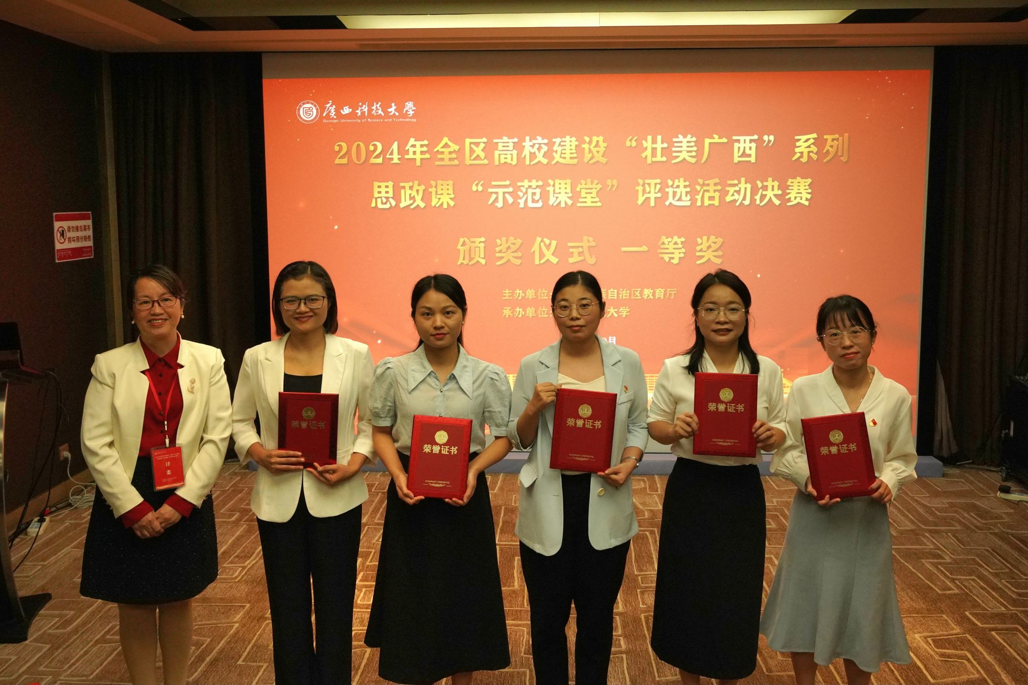近日,自治區(qū)教育廳組織開(kāi)展的全區(qū)高校建設(shè)“壯美廣西”系列思政課“示范課堂”評(píng)比活動(dòng)結(jié)果公布,我校鄭志琴老師團(tuán)隊(duì)獲一等獎(jiǎng),陳鳳儉和陸禮娟老師團(tuán)隊(duì)獲三等獎(jiǎng),取得了突破性的成績(jī)。全區(qū)高校共有217堂思政課參與評(píng)比,其中,本科組109堂,高職高專(zhuān)組108堂。經(jīng)各高校推薦、專(zhuān)家評(píng)審,有40名選手晉級(jí)決賽。
