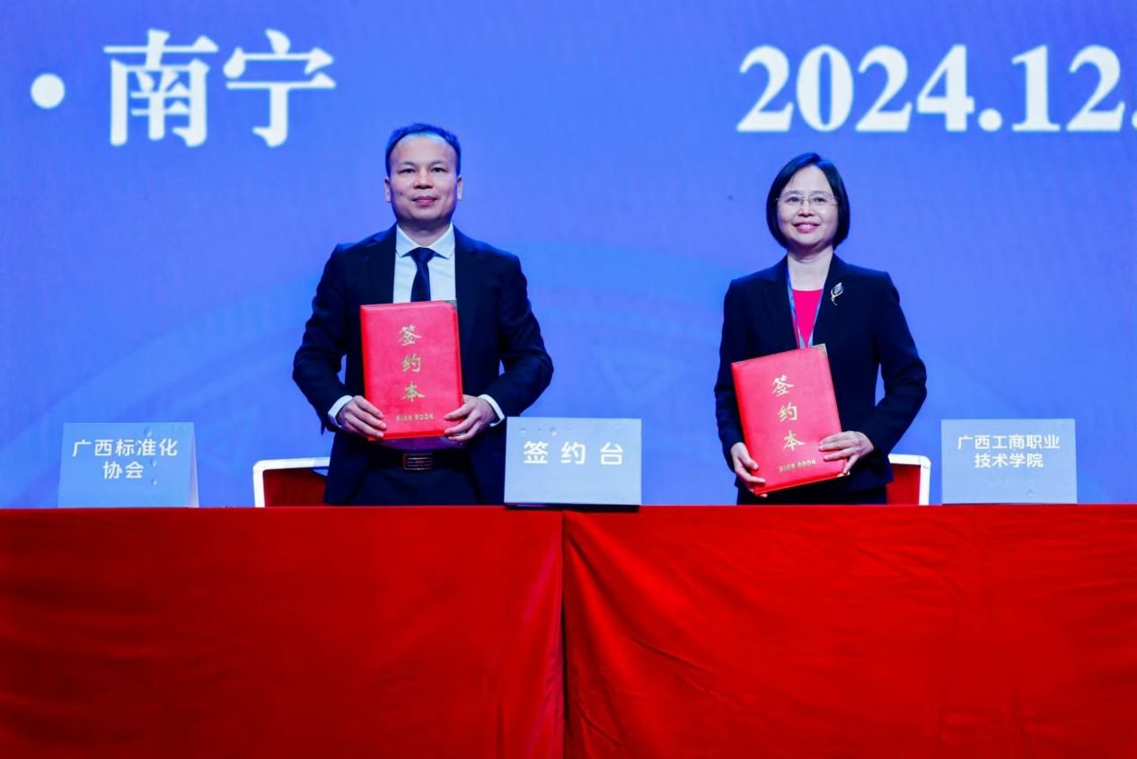 此次合作協(xié)議的簽訂是我校與廣西標(biāo)準(zhǔn)化協(xié)會(huì)在產(chǎn)學(xué)研合作過(guò)程中的又一里程碑式項(xiàng)目,為我校教師積極參與制訂標(biāo)準(zhǔn)、提高科研及社會(huì)服務(wù)能力搭建良好平臺(tái)。此前,在廣西標(biāo)準(zhǔn)化協(xié)會(huì)的指導(dǎo)下,我校2024年主持及參與制訂《西林冷水米》、老友粉系列、糧食儲(chǔ)運(yùn)等團(tuán)體標(biāo)準(zhǔn)共23項(xiàng),另自主主持坦桑尼亞國(guó)家職業(yè)標(biāo)準(zhǔn)2項(xiàng),標(biāo)準(zhǔn)化工作成效初顯。今后,我校將會(huì)在框架合作協(xié)議基礎(chǔ)上,繼續(xù)制定更多高質(zhì)量團(tuán)體標(biāo)準(zhǔn),并向制定面向東盟原創(chuàng)性跨國(guó)標(biāo)準(zhǔn)發(fā)力,以標(biāo)準(zhǔn)制定為抓手切實(shí)推進(jìn)產(chǎn)學(xué)研用深度融合,實(shí)現(xiàn)教育、科技、人才一體推進(jìn)良性循環(huán),開創(chuàng)學(xué)校高質(zhì)量發(fā)展新途徑,提升學(xué)校社會(huì)知名度及國(guó)際影響力。