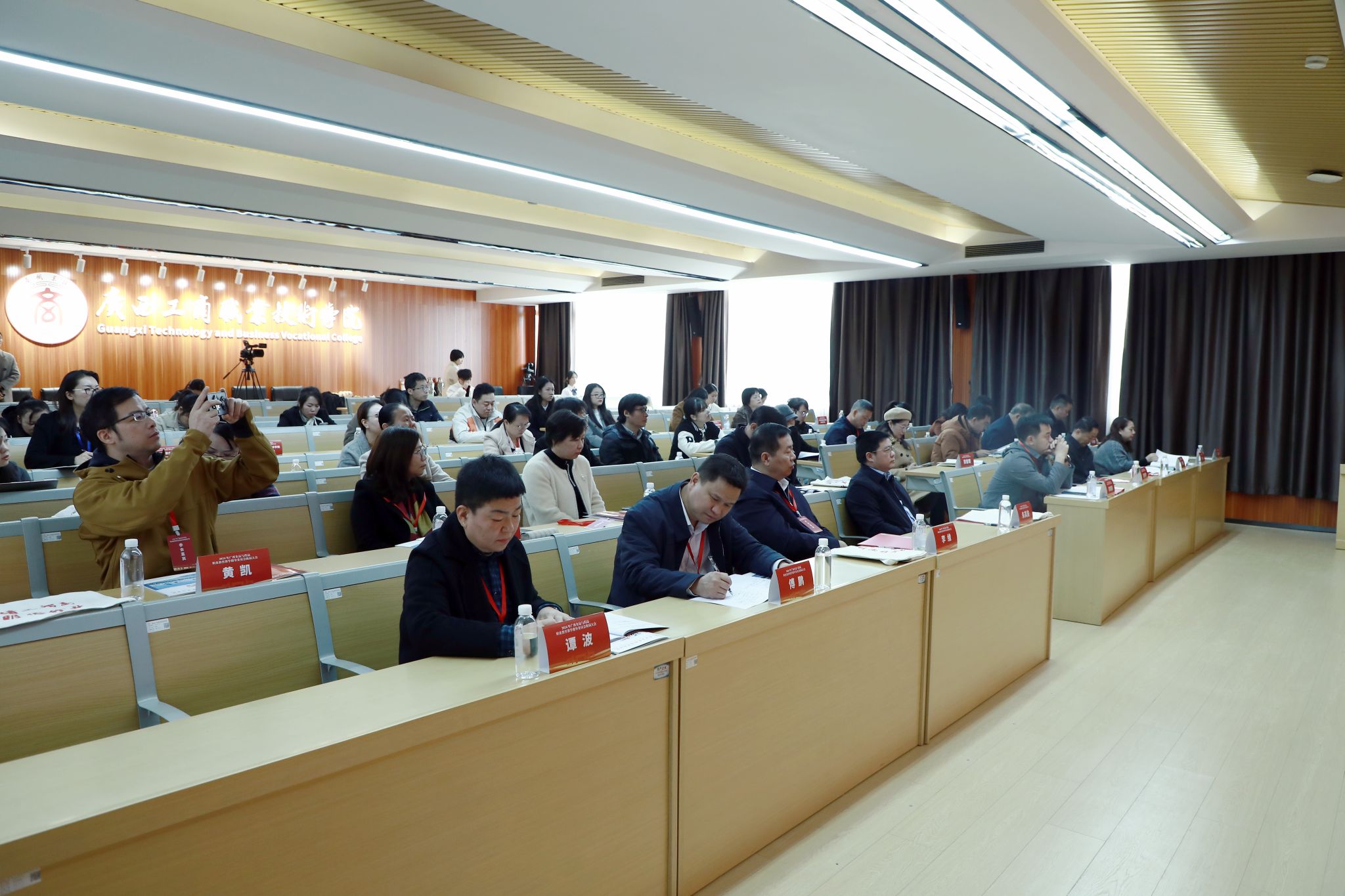 廣西食品藥品專業(yè)教育教學指導委員會委員、兄弟院校代表,學校相關(guān)二級學院負責人與代表老師參加大會。