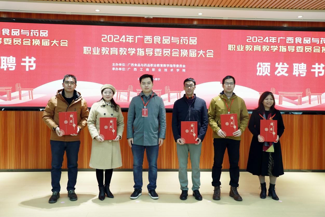 大會宣讀新一屆廣西食品與藥品職業(yè)教育教學指導委員會委員名單。其中,自治區(qū)糧食局副局長李國平任主任委員,學校黨委書記李維、黨委學生工作部部長譚波任副主任委員,學校副校長闕勇平任秘書長,學校糧油康旅學院李影球博士任委員。