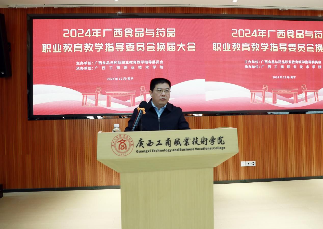 廣西教育研究院職業(yè)教育研究所李春鵬所長代表自治區(qū)教育廳作講話。他指出,廣西食品與藥品產(chǎn)業(yè)近年來發(fā)展勢頭強勁,產(chǎn)業(yè)升級步伐加快,集群效應(yīng)逐步凸顯,這離不開食品與藥品高素質(zhì)技術(shù)技能人才的強力支撐。他強調(diào),要進一步增強職業(yè)教育的產(chǎn)業(yè)適應(yīng)性,新一屆食品藥品行指委要緊緊圍繞廣西食品與藥品職業(yè)教育的改革與發(fā)展大局,積極履行職責,充分發(fā)揮職能作用;要深入開展調(diào)研,加強對行業(yè)人才需求的預測分析,精準搭建供需橋梁;要注重創(chuàng)新實踐,做好廣西區(qū)內(nèi)食品與藥品職業(yè)院校的教學改革指導,提升人才培養(yǎng)質(zhì)量,推進產(chǎn)教融合,助力職教出海。
