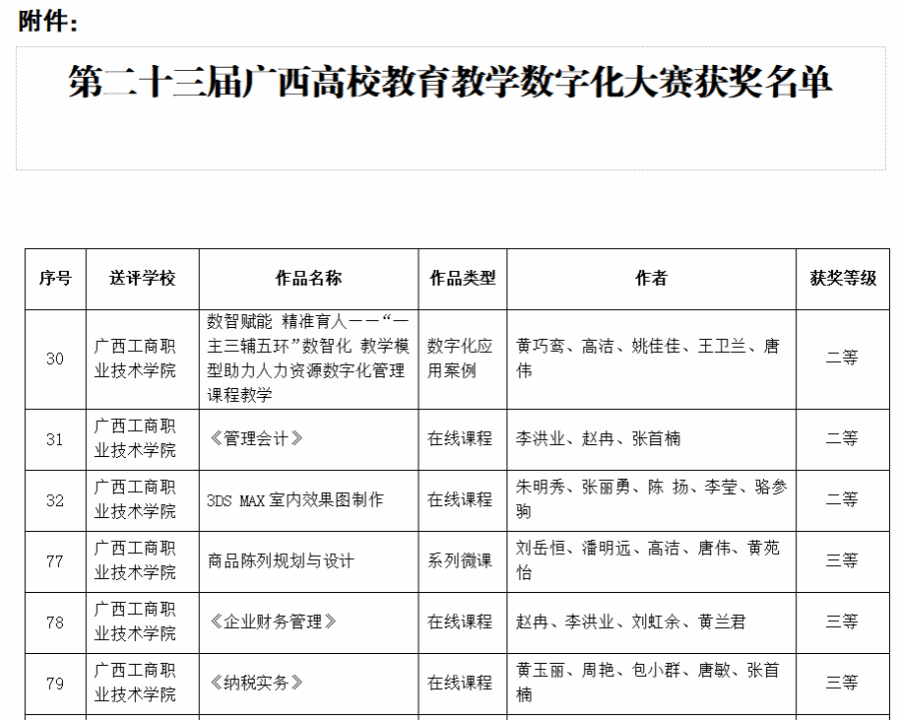 近日,自治區(qū)教育廳公布了第二十三屆廣西高校教育教學(xué)數(shù)字化大賽獲獎名單,我校教師在比賽中佳績,共獲二等獎3項、三等獎3項,是我校在近五年來首次在第二十三屆廣西高校教育教學(xué)數(shù)字化大賽中取得新突破!