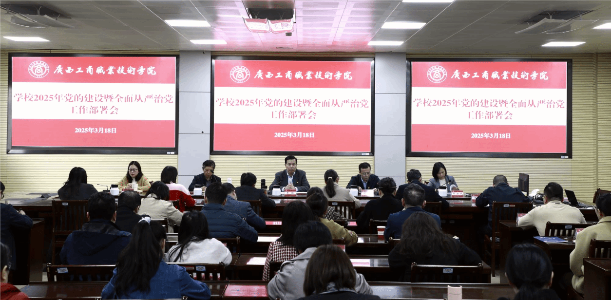 3月18日,學(xué)校在鵬飛校區(qū)召開(kāi)2025年黨的建設(shè)暨全面從嚴(yán)治黨工作部署會(huì),學(xué)習(xí)全區(qū)高校黨的建設(shè)工作會(huì)議精神,部署學(xué)校2025年黨的建設(shè)暨全面從嚴(yán)治黨工作和學(xué)校2025年紀(jì)檢監(jiān)察工作。學(xué)校黨委書(shū)記李維,學(xué)校校長(zhǎng)劉進(jìn),學(xué)校黨委副書(shū)記安仲文,學(xué)校黨委副書(shū)記、紀(jì)委書(shū)記韋云鳳,學(xué)校副校長(zhǎng)鄭華參加會(huì)議。