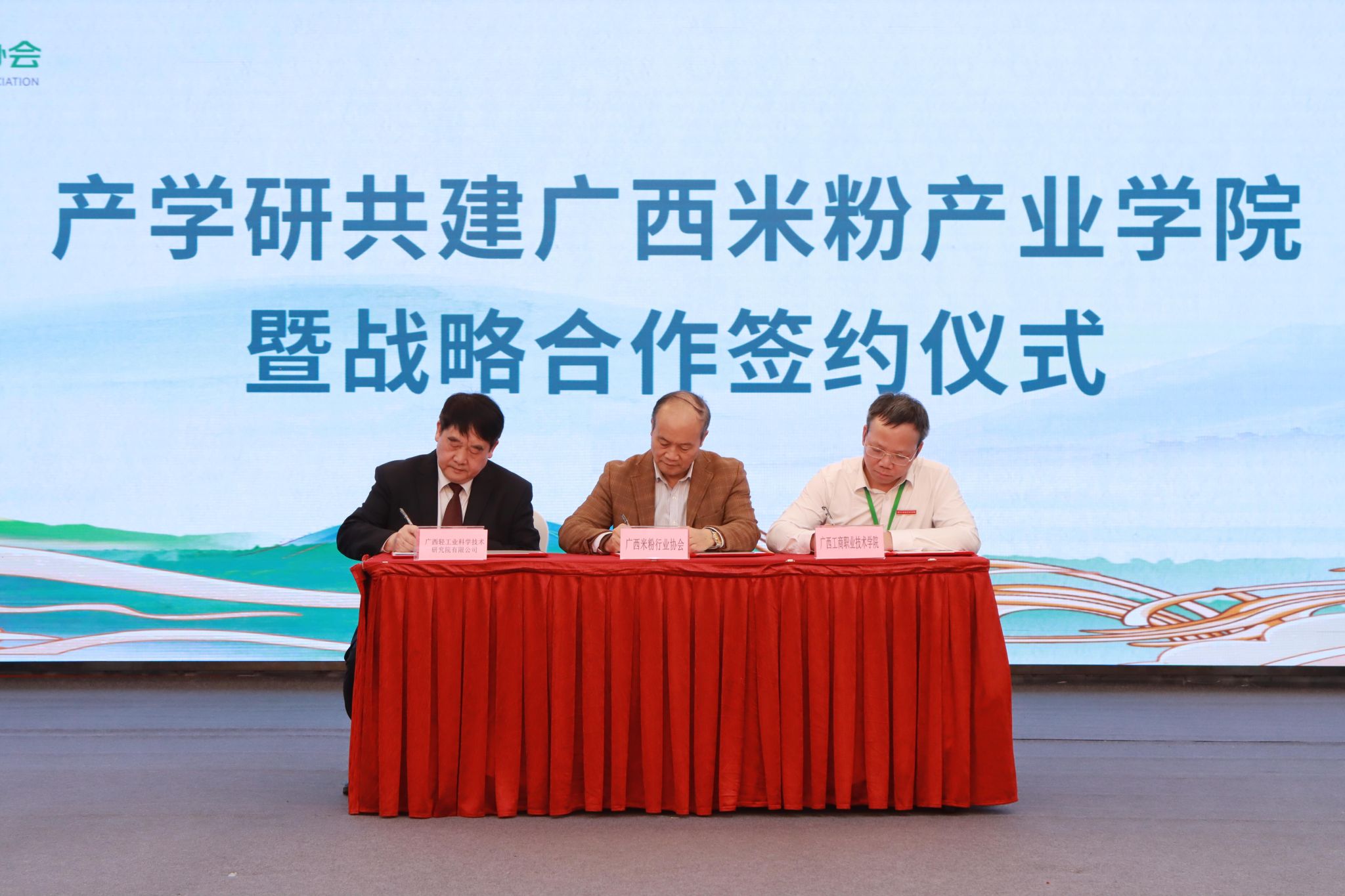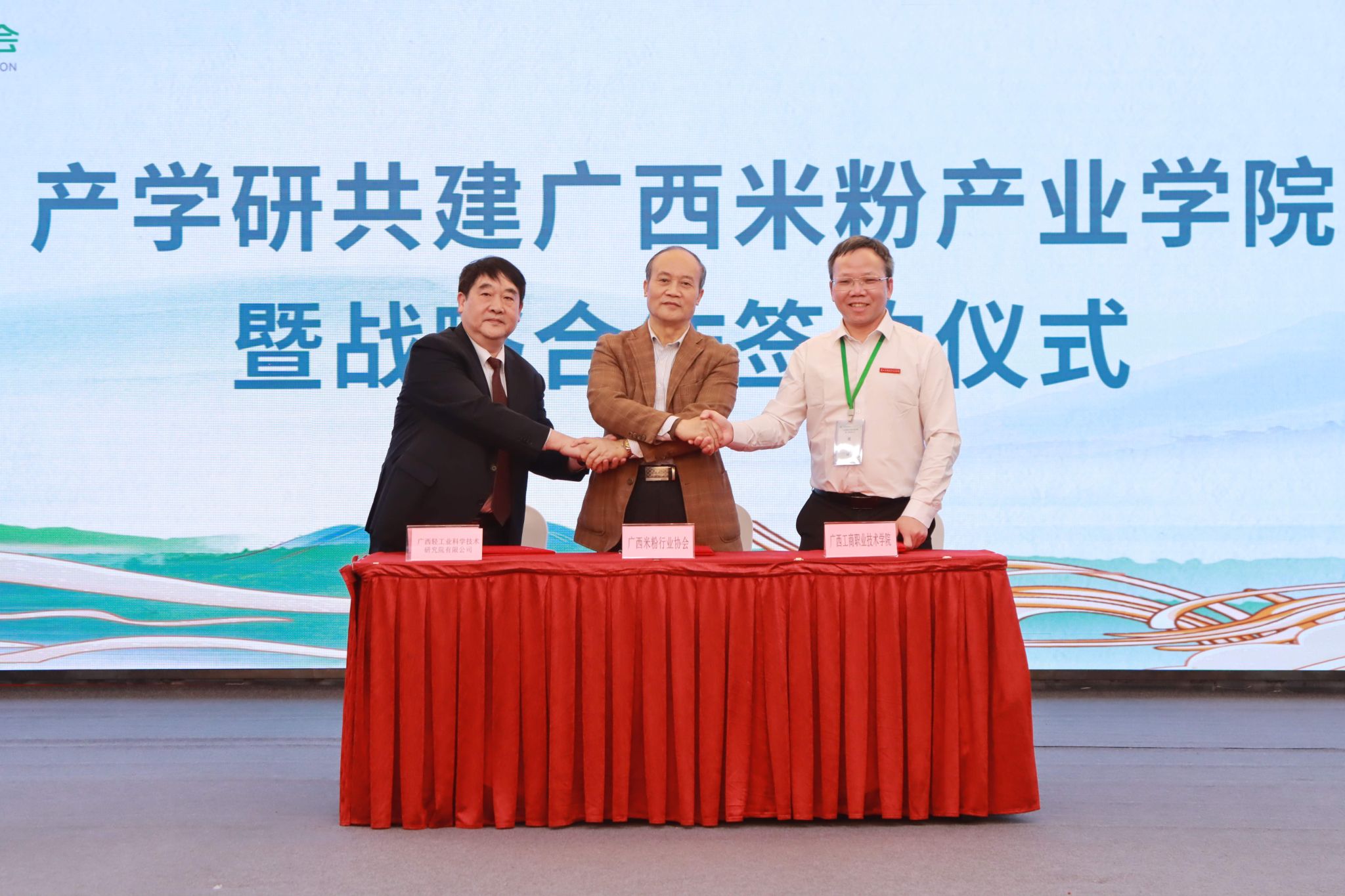春鳥鳴新曲,新夢展宏圖。2025年3月21日,廣西米粉行業(yè)協(xié)會成立大會暨第一次會員大會在南寧舉行,我校當(dāng)選常務(wù)副理事長單位,并與廣西米粉行業(yè)協(xié)會和廣西輕工業(yè)科學(xué)技術(shù)研究院簽訂產(chǎn)學(xué)研合作協(xié)議,共同組建廣西米粉產(chǎn)業(yè)學(xué)院。廣西米粉產(chǎn)業(yè)學(xué)院以推動產(chǎn)學(xué)研深度開展產(chǎn)教融合、實現(xiàn)共建共贏為目的,為廣西米粉產(chǎn)業(yè)的持續(xù)健康發(fā)展提供強有力的人才支撐和智力支持。