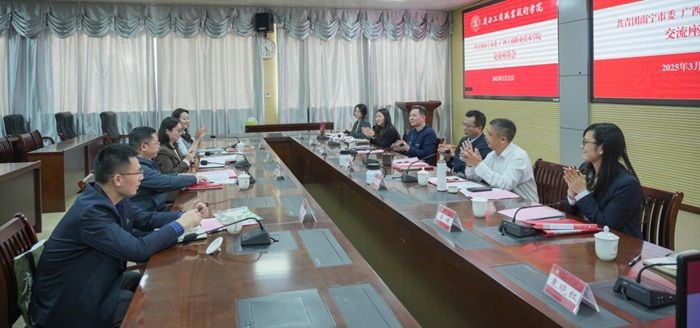 座談會上,劉進(jìn)校長代表學(xué)校對共青團(tuán)南寧市委一行表示熱烈歡迎,并詳細(xì)介紹了學(xué)校辦學(xué)歷史與育人特色。他表示,學(xué)校將以此次合作為契機(jī),與共青團(tuán)南寧市委共筑“紅色育人”新高地、共建“政-企-?!甭?lián)動機(jī)制和共育青年成長“生態(tài)圈”,將糧食安全、人工智能等特色領(lǐng)域融入人才培養(yǎng),為首府經(jīng)濟(jì)社會發(fā)展輸送更多高素質(zhì)青年人才。