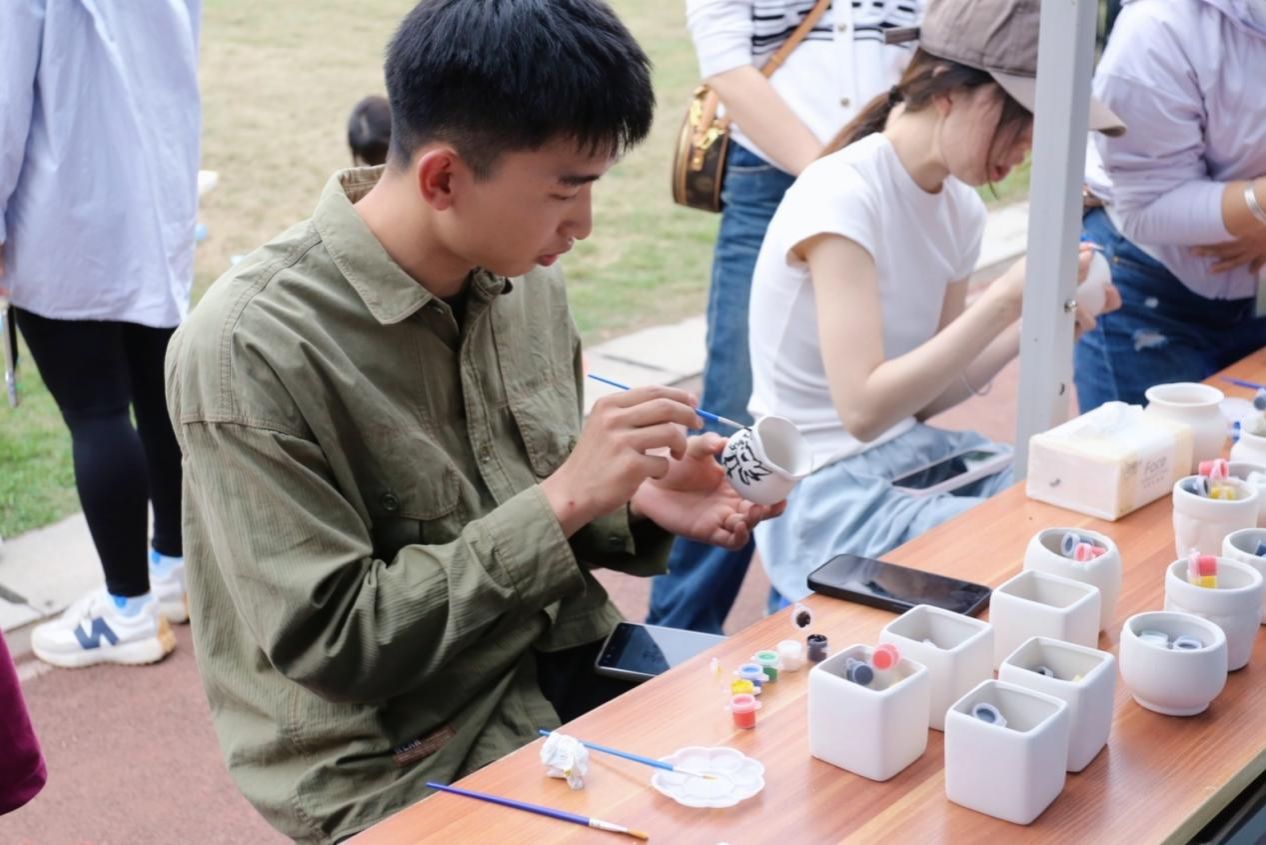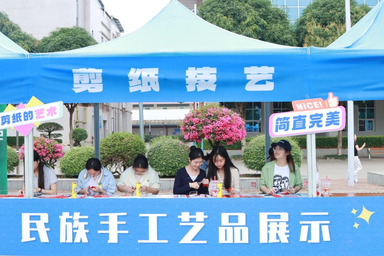 此外,開幕式還舉辦了民族文化體驗活動,師生齊聚各校區(qū)田徑場,參加這一場民族文化盛宴,積極參與到豐富多彩的民族文化體驗活動當中。民族體育競技、民族美食品嘗、手工藝品展示等環(huán)節(jié)吸引了眾多師生駐足。大家親手體驗了蠶絲繞扇工藝、藍染、手工繡球制作、博白芒編等傳統(tǒng)技藝,欣賞了琳瑯滿目的民族手工藝品和學生創(chuàng)意作品。壯鄉(xiāng)特色美食更是讓師生們贊不絕口,現(xiàn)場氣氛熱烈。
