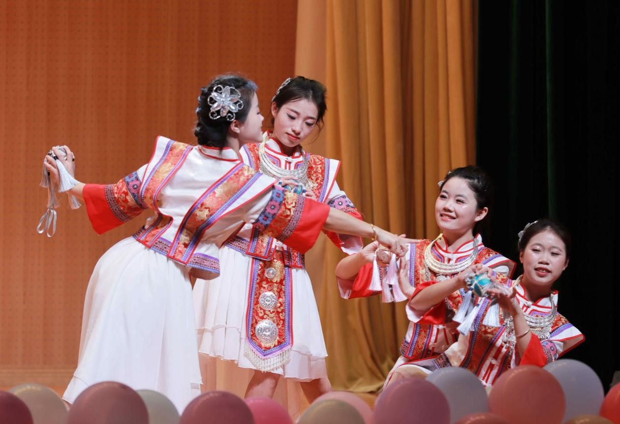 開幕式上,絢麗多彩的民族文藝匯演將現(xiàn)場氛圍推向高潮。民族舞蹈、歌曲演唱、服裝走秀等節(jié)目輪番上演,展現(xiàn)了各民族文化的獨特魅力,彰顯了民族文化自信。師生們在歡聲笑語中感受著民族團結(jié)的溫暖與力量。