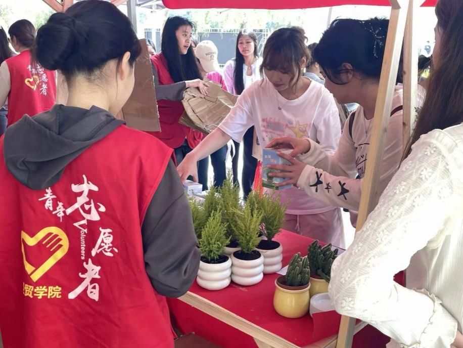 經(jīng)貿(mào)與康旅學院在學雷鋒市集開設了“手植新綠,掃盡焦‘綠’”攤位,以“紙盒換綠植”為載體,鼓勵同學們以廢棄紙盒換取綠植,活動現(xiàn)場熱鬧非凡,同學們紛紛帶著積攢的紙箱來兌換心儀的綠植,用實際行動踐行環(huán)保理念。多肉、草頭娃娃、“放‘青’松”盆栽……各種綠植被大家領取,為宿舍增添一抹綠色。同學們通過親手回收廢品、養(yǎng)護綠植,對環(huán)保有了更深刻的理解,紛紛表示要從點滴做起,守護地球。