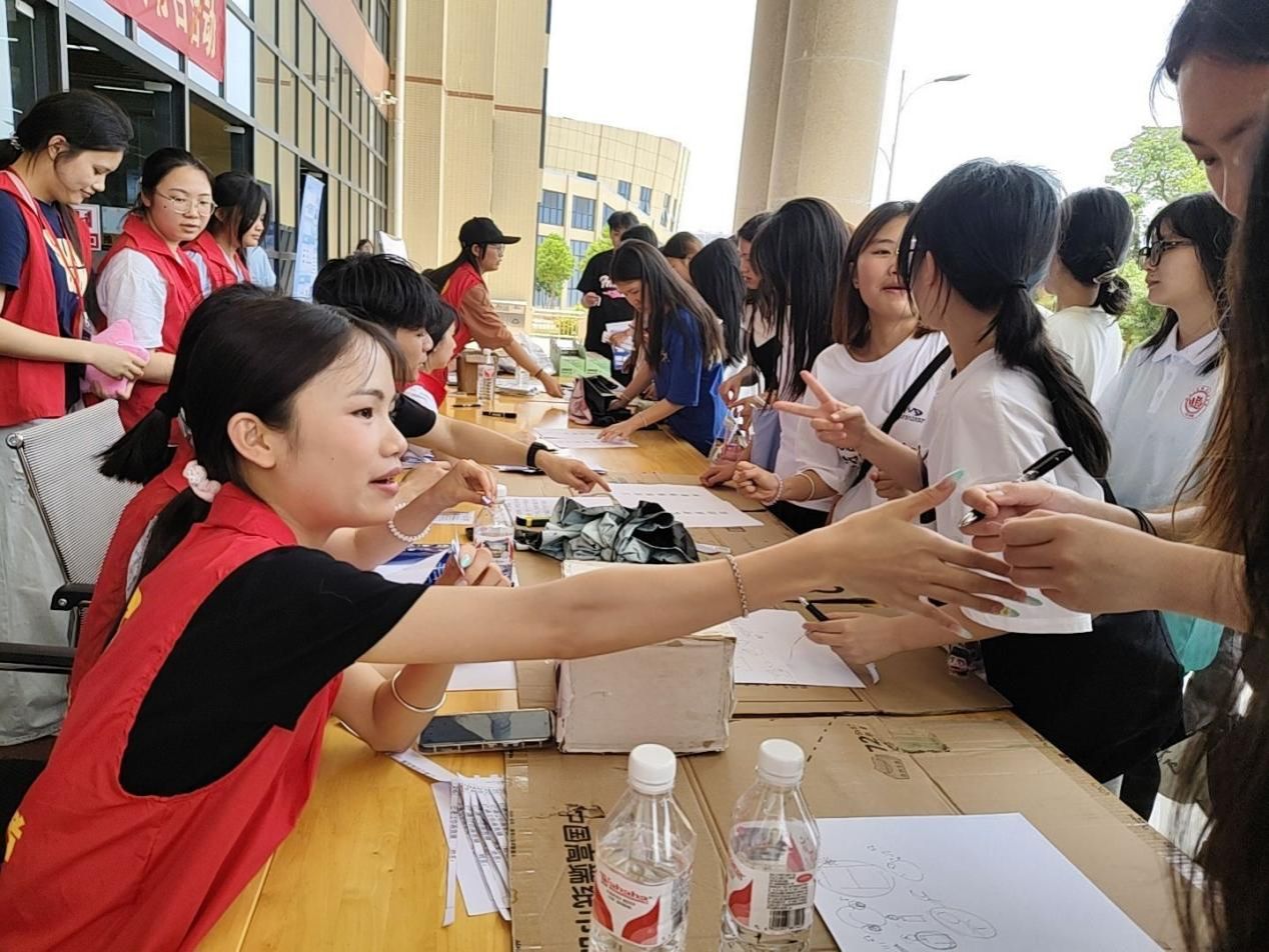 在啟動儀式后的互動環(huán)節(jié),在鵬飛校區(qū)、武鳴校區(qū)、中堯校區(qū)開展了讀書日系列活動?!霸娫~大挑戰(zhàn)” 環(huán)節(jié)中,參與者需要根據(jù)提示猜出相應的詩詞,不僅考驗了大家的詩詞儲備量,更激發(fā)了對中華經(jīng)典詩詞的熱愛;“套圈” 游戲別出心裁,獎品為多肉植物、綠植盆栽等,讓師生們在游戲的同時收獲一抹綠意;“你畫我猜”現(xiàn)場妙趣橫生,參與者手腳并用、形象比劃,搭檔絞盡腦汁猜測詞語,夸張的動作和搞笑的互動引得圍觀人群捧腹大笑;“簽名打卡拍照”區(qū),師生們在精心布置的主題背景墻前揮毫簽名,與書香留影,記錄下這充滿文化氣息的美好時刻。據(jù)統(tǒng)計,本次活動啟動儀式參與人數(shù)規(guī)模為2200多人次。
