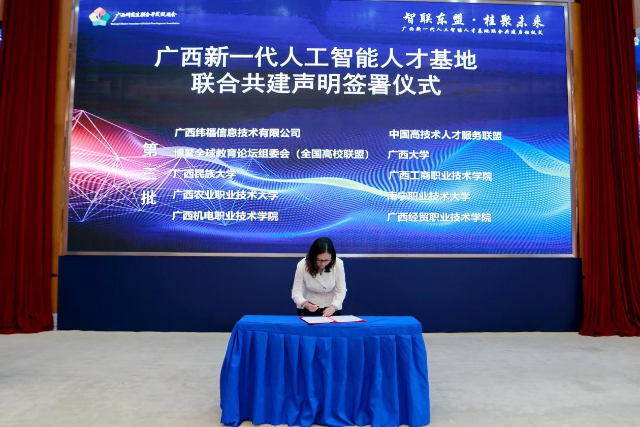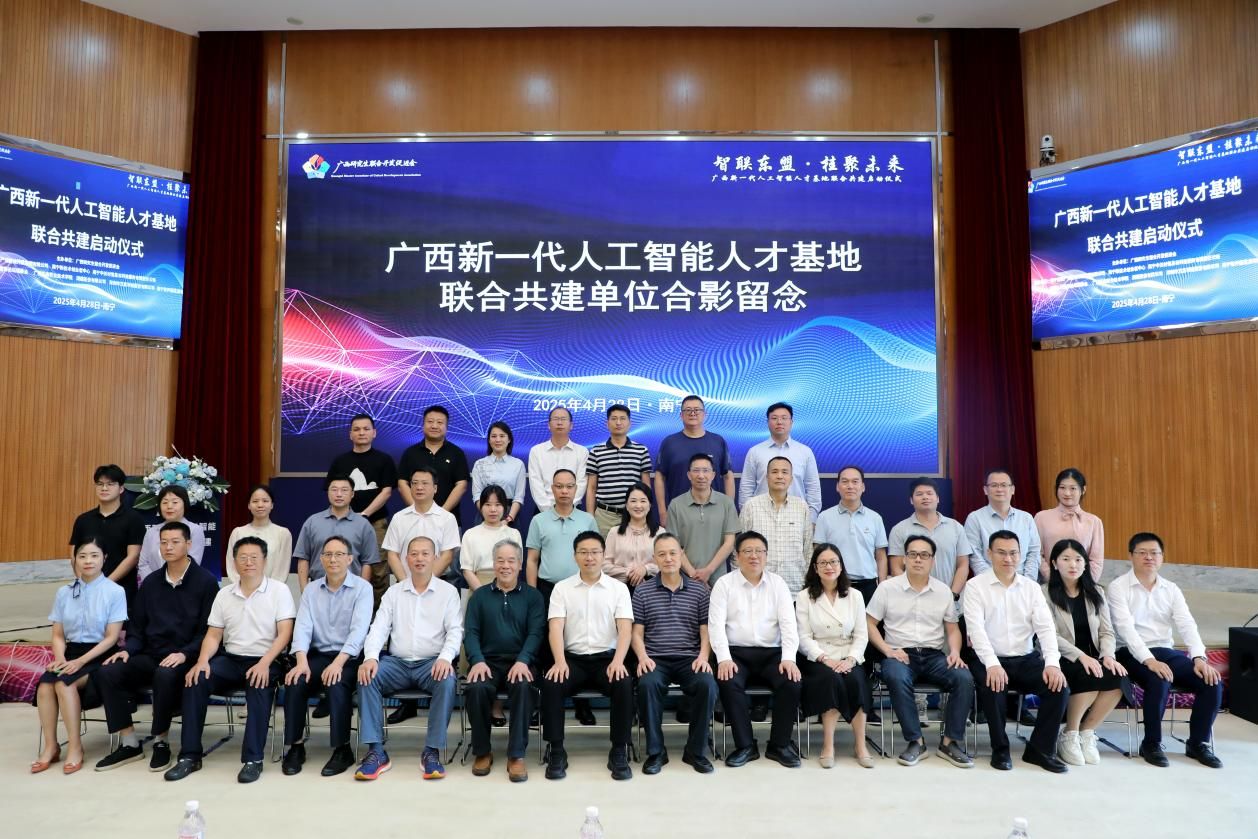 為深入貫徹落實國家《新一代人工智能發(fā)展規(guī)劃》及廣西壯族自治區(qū)“數(shù)字強區(qū)”戰(zhàn)略部署,建立產(chǎn)、科、教、人一體化數(shù)字產(chǎn)業(yè)人才培育體系,2025年4月28日,廣西新一代人工智能人才基地聯(lián)合共建啟動儀式在南寧高新區(qū)中關(guān)村創(chuàng)新示范基地舉行。來自全區(qū) 40 家政、產(chǎn)、學(xué)、研、金、用單位代表共同簽署《聯(lián)合共建聲明》,標志著廣西在人工智能人才培養(yǎng)、技術(shù)創(chuàng)新與產(chǎn)業(yè)融合領(lǐng)域邁出關(guān)鍵性一步,正式開啟面向東盟的數(shù)字經(jīng)濟人才高地建設(shè)新征程。我校作為共建單位之一簽署《聯(lián)合共建聲明》,并協(xié)辦此次啟動儀式。