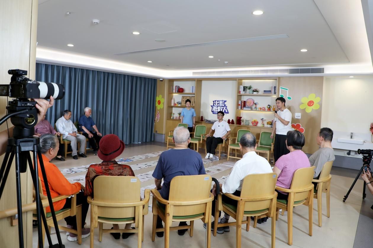 在錄制現(xiàn)場,我校智慧健康養(yǎng)老服務(wù)與管理專業(yè)的同學(xué)們與另外2所高職院校的同學(xué)組成康養(yǎng)小隊(duì),分為活動(dòng)策劃組和護(hù)理保健組,以真人秀形式進(jìn)行節(jié)目錄制?;顒?dòng)策劃組的同學(xué)們帶領(lǐng)養(yǎng)老中心的老人們一起做游戲、唱歌、節(jié)目表演等,提高老人們的精神愉悅感;護(hù)理保健組的同學(xué)們?yōu)槔先藗冞M(jìn)行推拿、復(fù)健等不同的醫(yī)療保健項(xiàng)目,提高老人們的身體健康水平。節(jié)目順利完成錄制,錄制過程十分活潑有趣,歡呼聲、笑聲縈繞在現(xiàn)場,充分展現(xiàn)了我校學(xué)子的專業(yè)能力。
