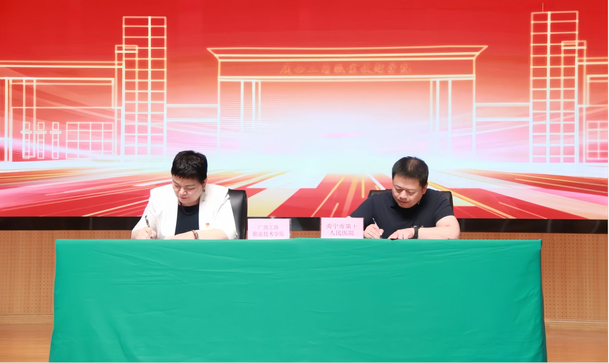 在全場熱烈的掌聲中,學(xué)校黨委學(xué)工部譚波部長與南寧市第十人民醫(yī)院朱云峰院長簽署了合作協(xié)議并共同為醫(yī)校合作揭牌。按照雙方合作協(xié)議精神,醫(yī)院將會(huì)為我院開通心理危機(jī)學(xué)生轉(zhuǎn)介綠色通道,提供心理健康知識(shí)講座、案例督導(dǎo)、心理評(píng)估與測量等專業(yè)服務(wù),滿足我院師生在精神衛(wèi)生方面的服務(wù)需求。