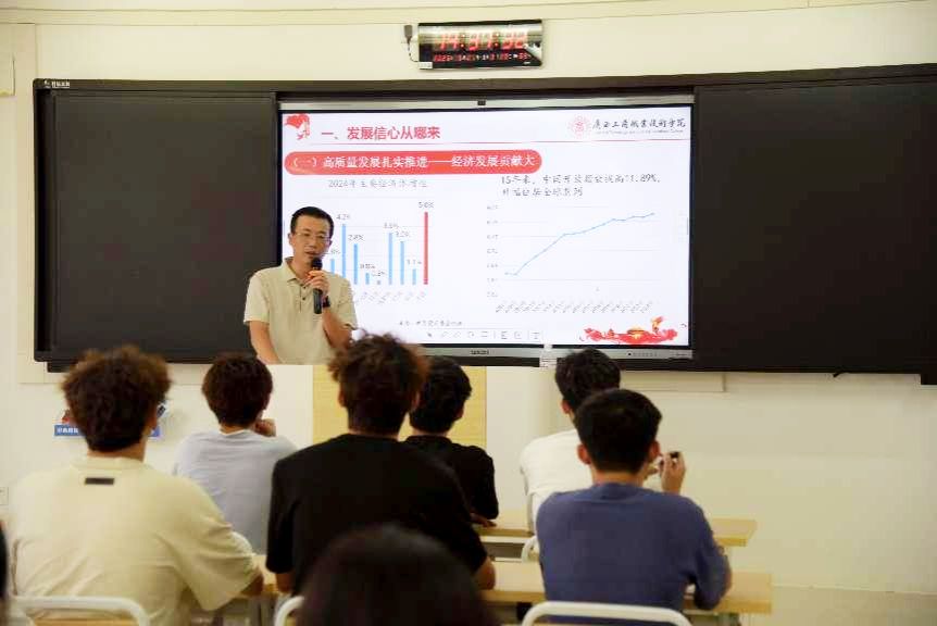 學校校長劉進為營銷2305班學生講授《中國經濟行穩(wěn)致遠》主題思政課。他廣泛分析國內外、區(qū)內外時政熱點,從“發(fā)展信心從哪來、迎難而上靠什么和奮發(fā)有為怎么干”三個維度,層層遞進,深入闡述中國經濟行穩(wěn)致遠的內在邏輯和有效舉措。授課過程中,劉校長通過詳實的數(shù)據(jù)、生動的案例,讓同學們深刻認識到中國經濟在復雜多變的全球形勢下所展現(xiàn)出的強大韌性和潛力,極大地增強了同學們對國家發(fā)展的信心與責任感。劉進校長還鼓勵同學們關注時代發(fā)展,提升自身能力,積極投身到國家經濟建設之中。