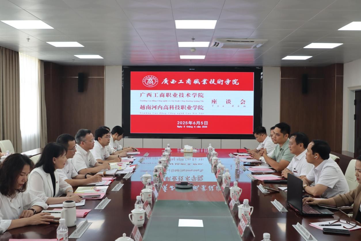 為進一步深化我校與越南高校之間的教育合作關(guān)系,6月5日,河內(nèi)高科技職業(yè)學(xué)院代表團到我校進行教育訪問并開展工作交流。學(xué)校在武鳴校區(qū)召開了與河內(nèi)高科技職業(yè)學(xué)院座談會。學(xué)校校長劉進,副校長闕勇平,河內(nèi)高科技職業(yè)學(xué)院校長范春慶,副校長黎名光,我校教務(wù)科研處負(fù)責(zé)人、各二級學(xué)院院長及相關(guān)部門負(fù)責(zé)人,河內(nèi)高科技職業(yè)學(xué)院各系主任、來華在線國際教育負(fù)責(zé)人參加座談會。闕勇平副校長主持會議。