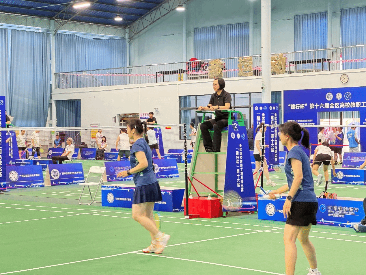 2025年6月5日—8日,由廣西壯族自治區(qū)教育廳指導、廣西學校體育衛(wèi)生藝術(shù)學會主辦、廣西交通職業(yè)技術(shù)學院承辦的“建行杯”第十六屆全區(qū)高校教職工羽毛球比賽在廣西交通職業(yè)技術(shù)學院昆侖校區(qū)精彩開賽。全區(qū)53所高校658名教職工運動員參與競技,賽事設(shè)置了教職工混合團體賽、校長組單打和雙打賽。學校校長劉進,黨委副書記、紀委書記韋云鳳,副校長陳寧春等16名教練員、運動員參加。學校黨委副書記、工會主席安仲文為領(lǐng)隊帶隊參加。
