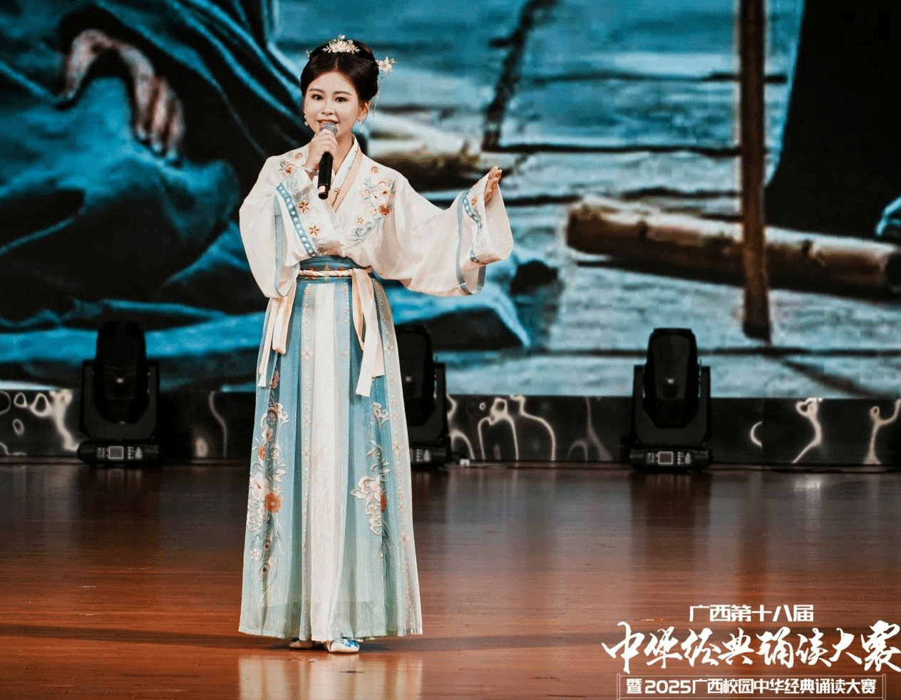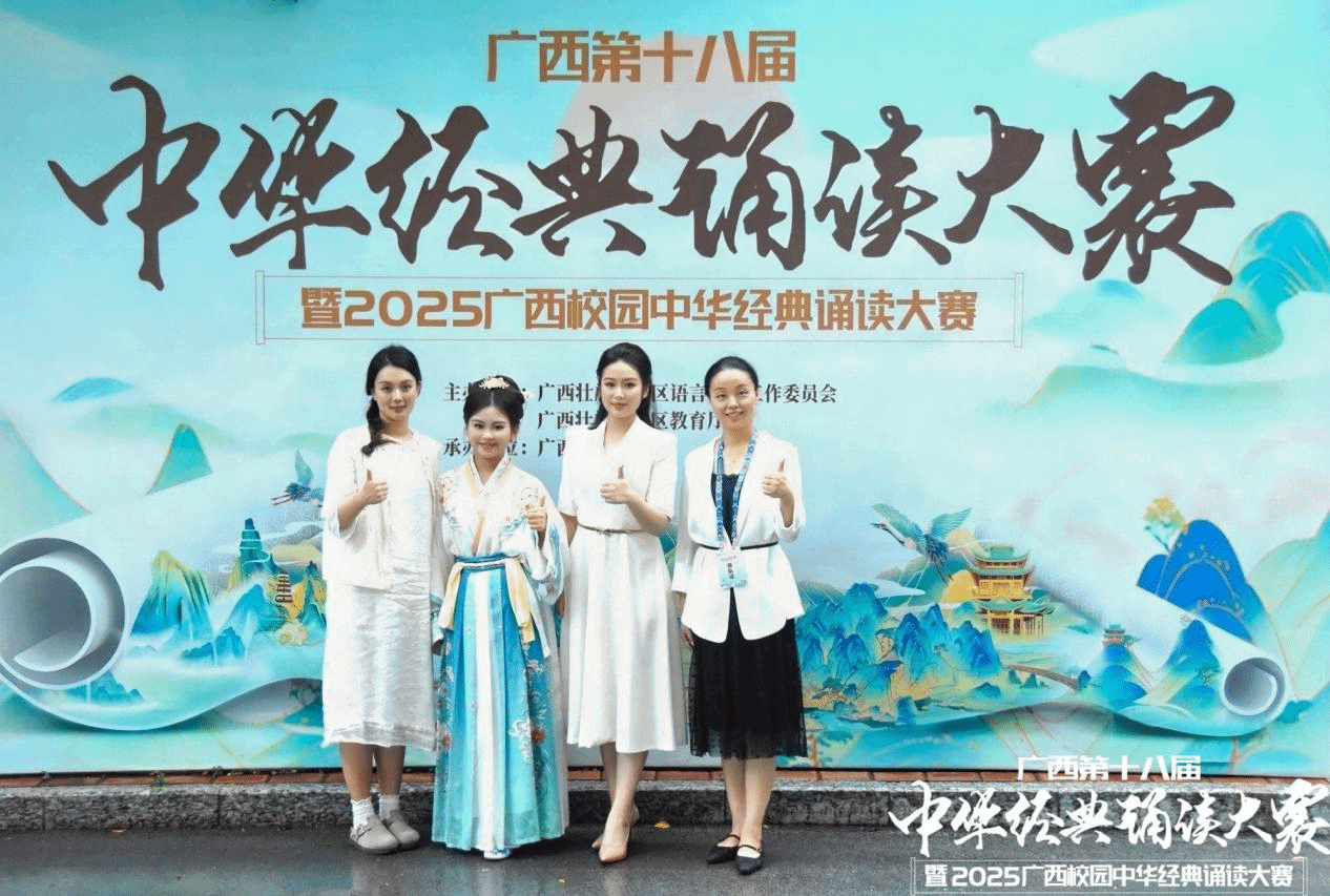 6月14日——16日,由自治區(qū)教育廳、自治區(qū)語委主辦的"廣西第十八屆中華經(jīng)典誦讀大賽暨2025廣西校園中華經(jīng)典誦讀大賽"現(xiàn)場(chǎng)總決賽在廣西民族大學(xué)思源湖校區(qū)圓滿落幕。我校精心組織師生團(tuán)隊(duì)參賽,通過精彩演繹展現(xiàn)中華經(jīng)典的文化魅力,獲得評(píng)委與觀眾高度贊譽(yù)。