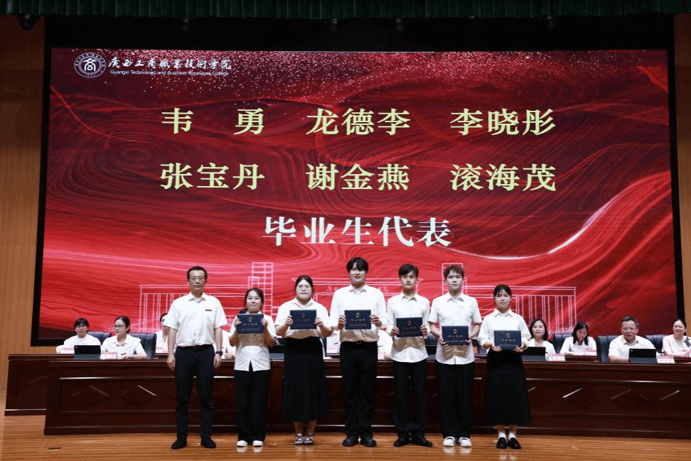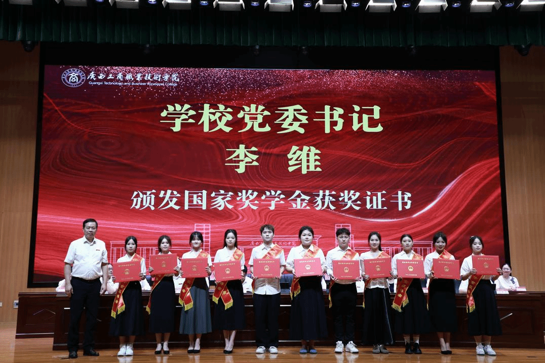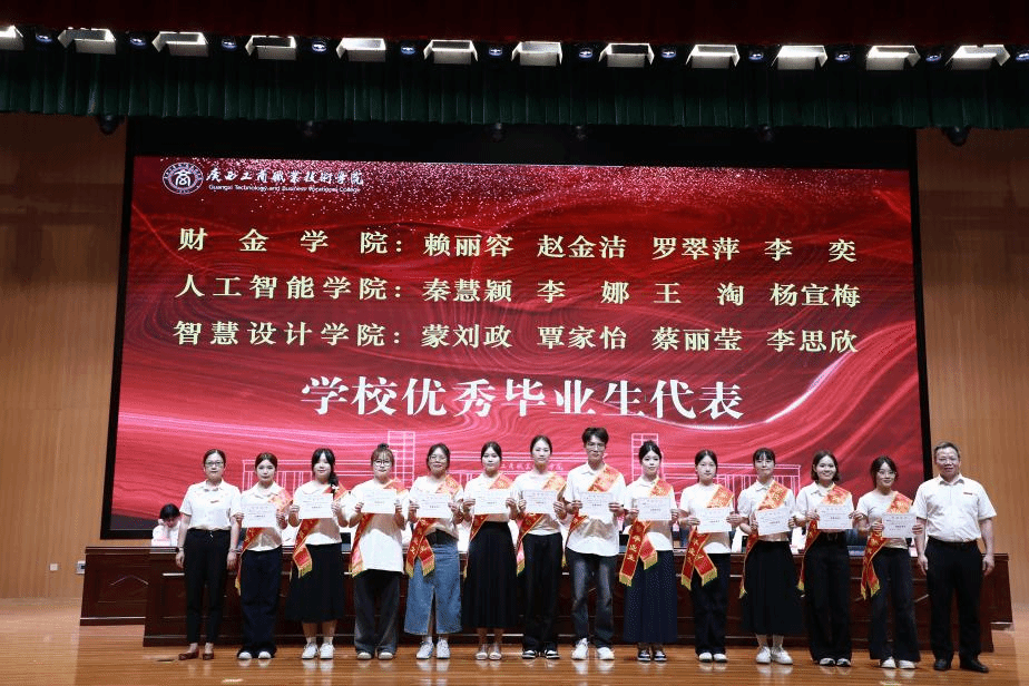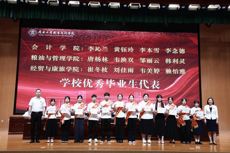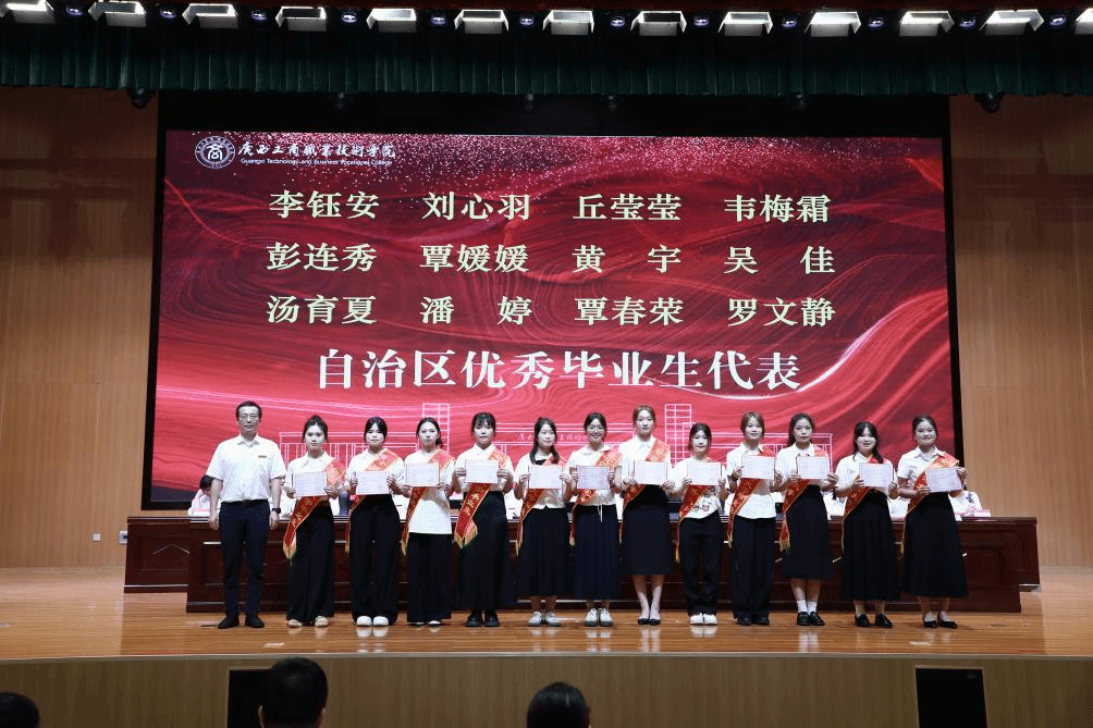 典禮上,闕勇平宣讀2025年畢業(yè)生文件,韋云鳳宣讀優(yōu)秀畢業(yè)生表彰文件,陳寧春宣讀榮獲國家獎學(xué)金優(yōu)秀學(xué)生表彰文件。李維為國家獎學(xué)金獲獎學(xué)生代表頒發(fā)榮譽(yù)證書,劉進(jìn)為自治區(qū)級“優(yōu)秀畢業(yè)生”代表頒發(fā)榮譽(yù)證書、為畢業(yè)生代表頒發(fā)畢業(yè)證書,韋云鳳、陳寧春、闕勇平、鄭華為校級“優(yōu)秀畢業(yè)生”代表頒發(fā)榮譽(yù)證書。