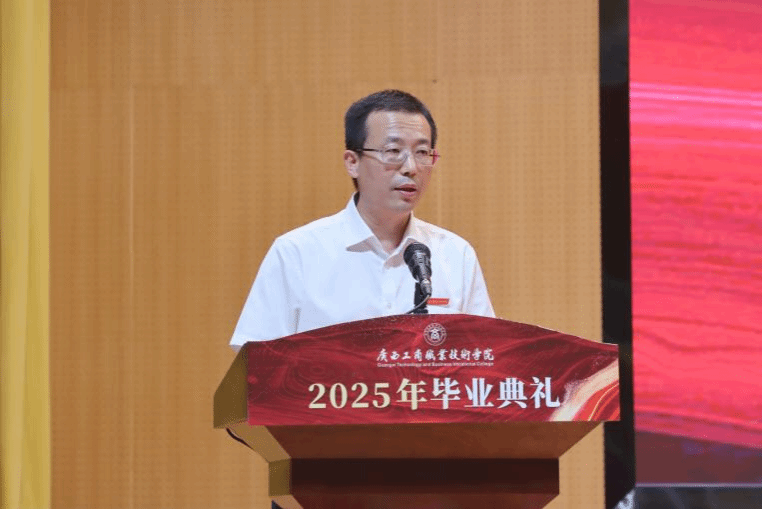學(xué)校黨委書記李維,黨委副書記、校長劉進(jìn),黨委副書記安仲文,黨委副書記、紀(jì)委書記韋云鳳,副校長陳寧春、闕勇平、鄭華,學(xué)校各部門、各單位負(fù)責(zé)人,各二級學(xué)院全體領(lǐng)導(dǎo),畢業(yè)班輔導(dǎo)員代表,2025屆畢業(yè)生代表參加典禮。典禮由安仲文主持。