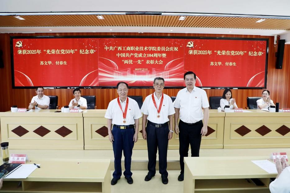 李維為蘇文華、付春生2位老黨員頒發(fā)了“光榮在黨50年”紀(jì)念章。