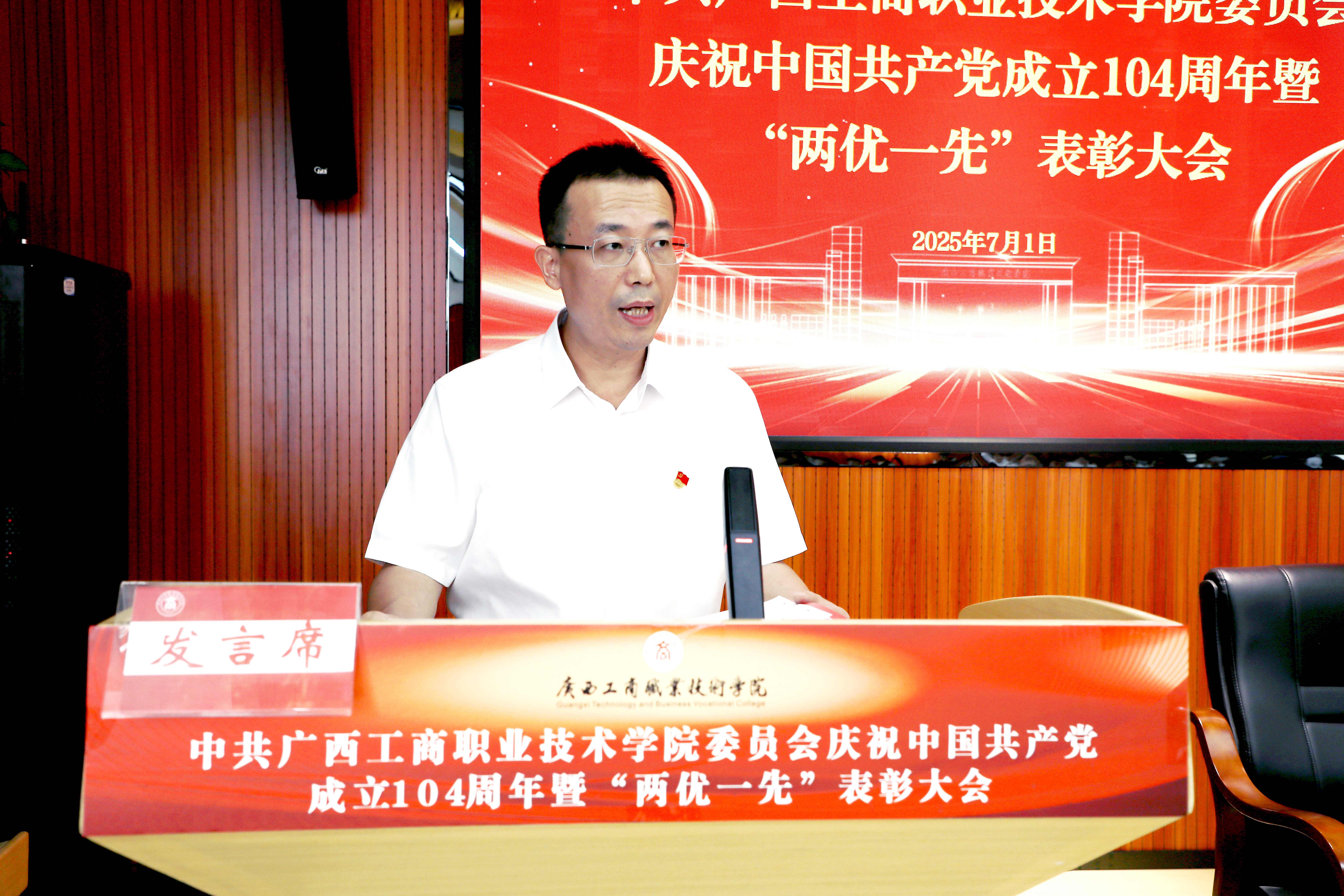 為慶祝中國共產(chǎn)黨成立104周年,回顧黨的光輝歷程,弘揚(yáng)黨的優(yōu)良傳統(tǒng),表彰先進(jìn)、樹立典型,展示新時(shí)代共產(chǎn)黨人的良好形象和精神面貌,7月1日,學(xué)校召開慶祝中國共產(chǎn)黨成立104周年暨“兩優(yōu)一先”表彰大會(huì)。學(xué)校黨委書記李維,黨委副書記、校長劉進(jìn),黨委副書記安仲文,黨委副書記、紀(jì)委書記韋云鳳,副校長陳寧春、鄭華,部分教職工黨員,新發(fā)展黨員代表,離退休黨員代表在主會(huì)場(chǎng)參加會(huì)議,其余教職工黨員在分會(huì)場(chǎng)參會(huì)。大會(huì)由劉進(jìn)主持。