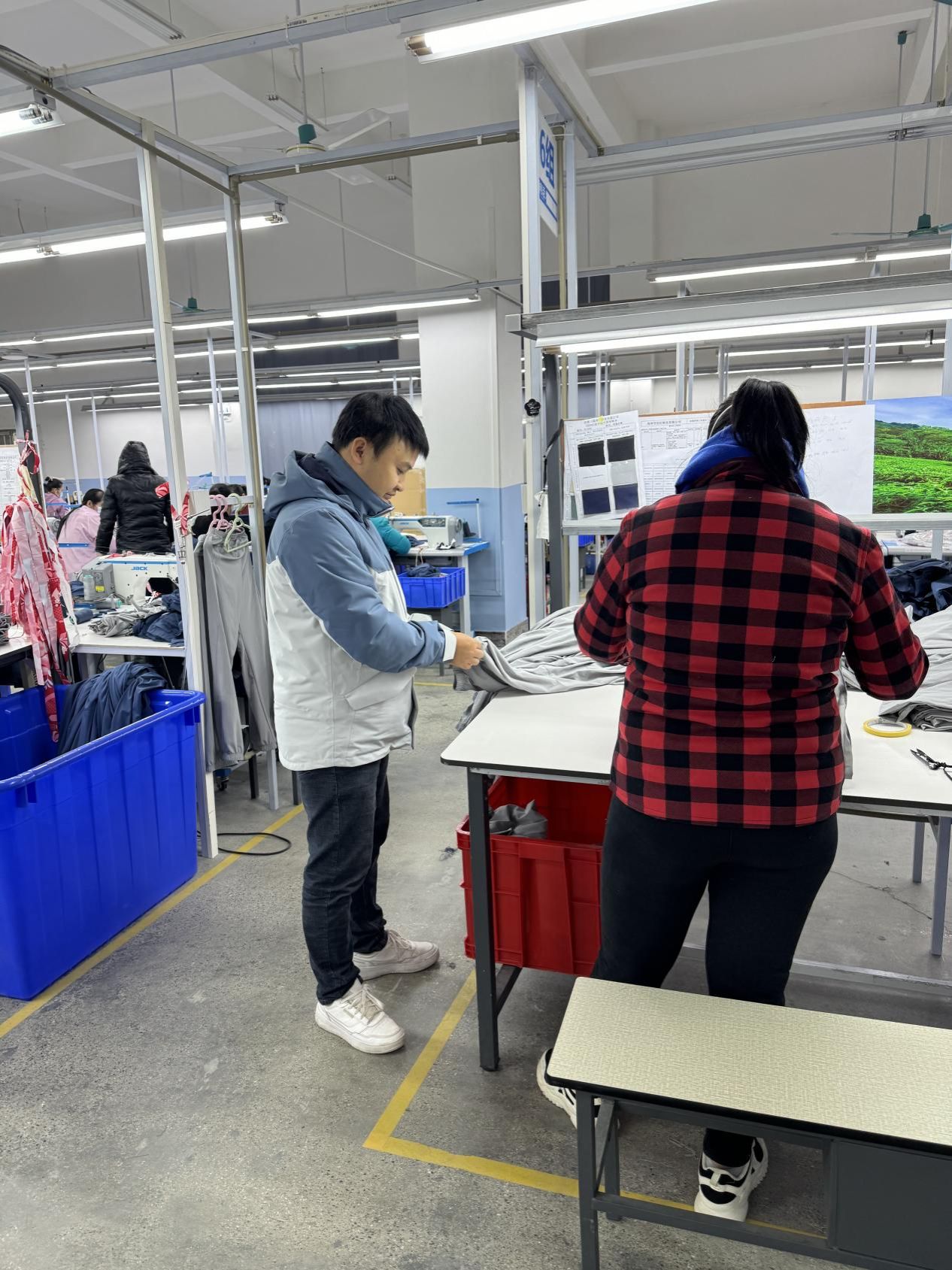 黃必忠進生產(chǎn)車間了解情況