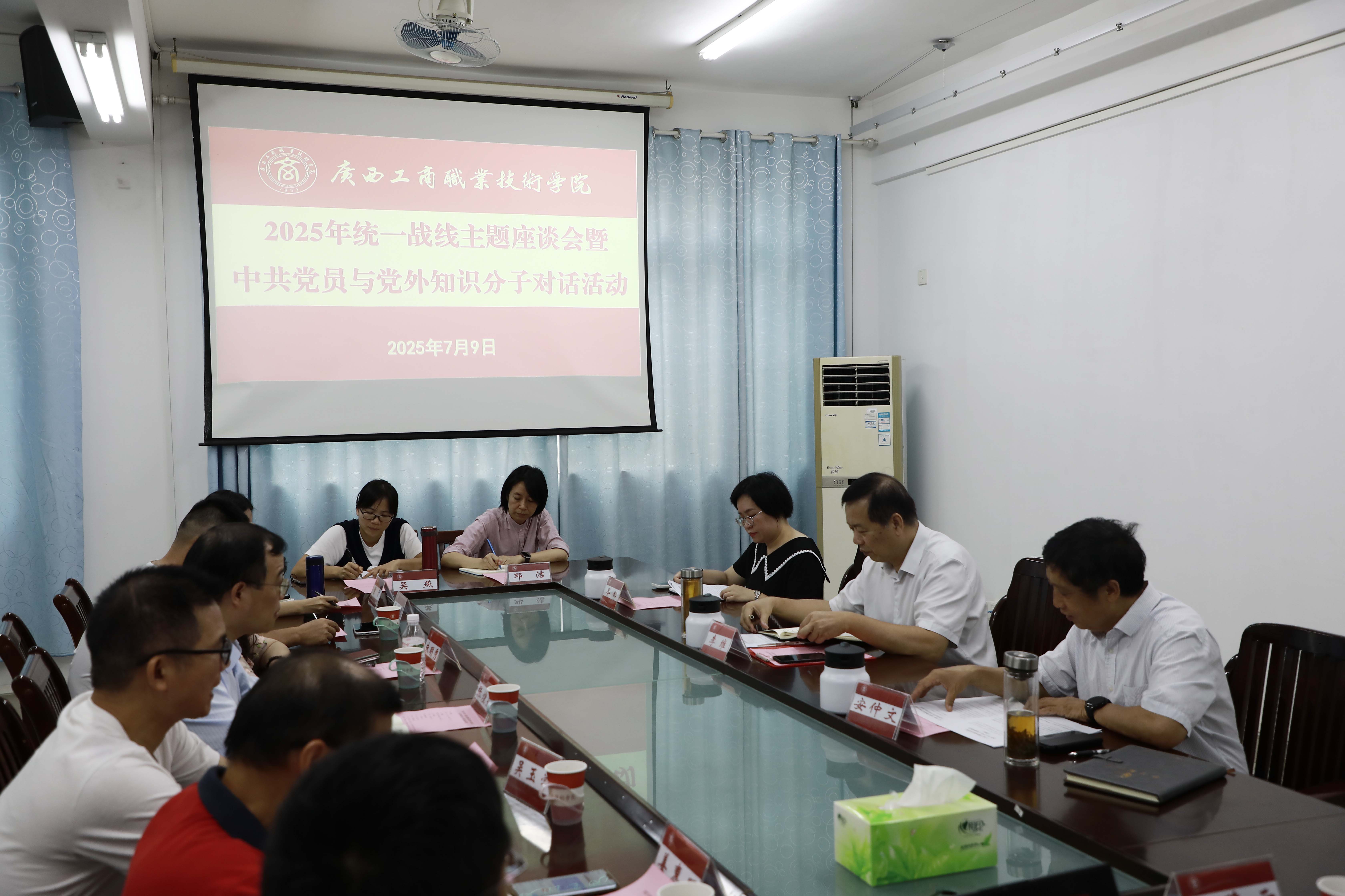 為深入貫徹落實習(xí)近平總書記關(guān)于做好新時代黨的統(tǒng)一戰(zhàn)線工作的重要思想,加強(qiáng)學(xué)校黨委與各民主黨派、統(tǒng)戰(zhàn)團(tuán)體之間的溝通和交流,7月9日,學(xué)校在鵬飛校區(qū)舉辦2025年統(tǒng)一戰(zhàn)線主題座談會暨中共黨員與黨外知識分子對話活動。學(xué)校黨委書記李維出席活動并講話,黨委副書記安仲文主持會議。學(xué)校統(tǒng)戰(zhàn)部負(fù)責(zé)人,學(xué)校民主黨派教職工、無黨派人士、知聯(lián)會成員代表參加本次活動。