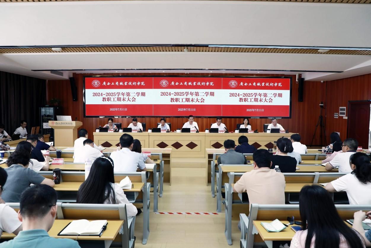 7月11日,學校在鵬飛校區(qū)召開2024—2025學年第二學期教職工期末大會,總結本學期學校工作的成效和經(jīng)驗,部署推進2025年下半年工作。學校領導李維、劉進、安仲文、韋云鳳、陳寧春、闕勇平、鄭華,中層領導干部,部分教職工代表在主會場參會,其余教職工在分會場參會。學校黨委書記李維主持大會,學校校長劉進作學期工作總結報告。