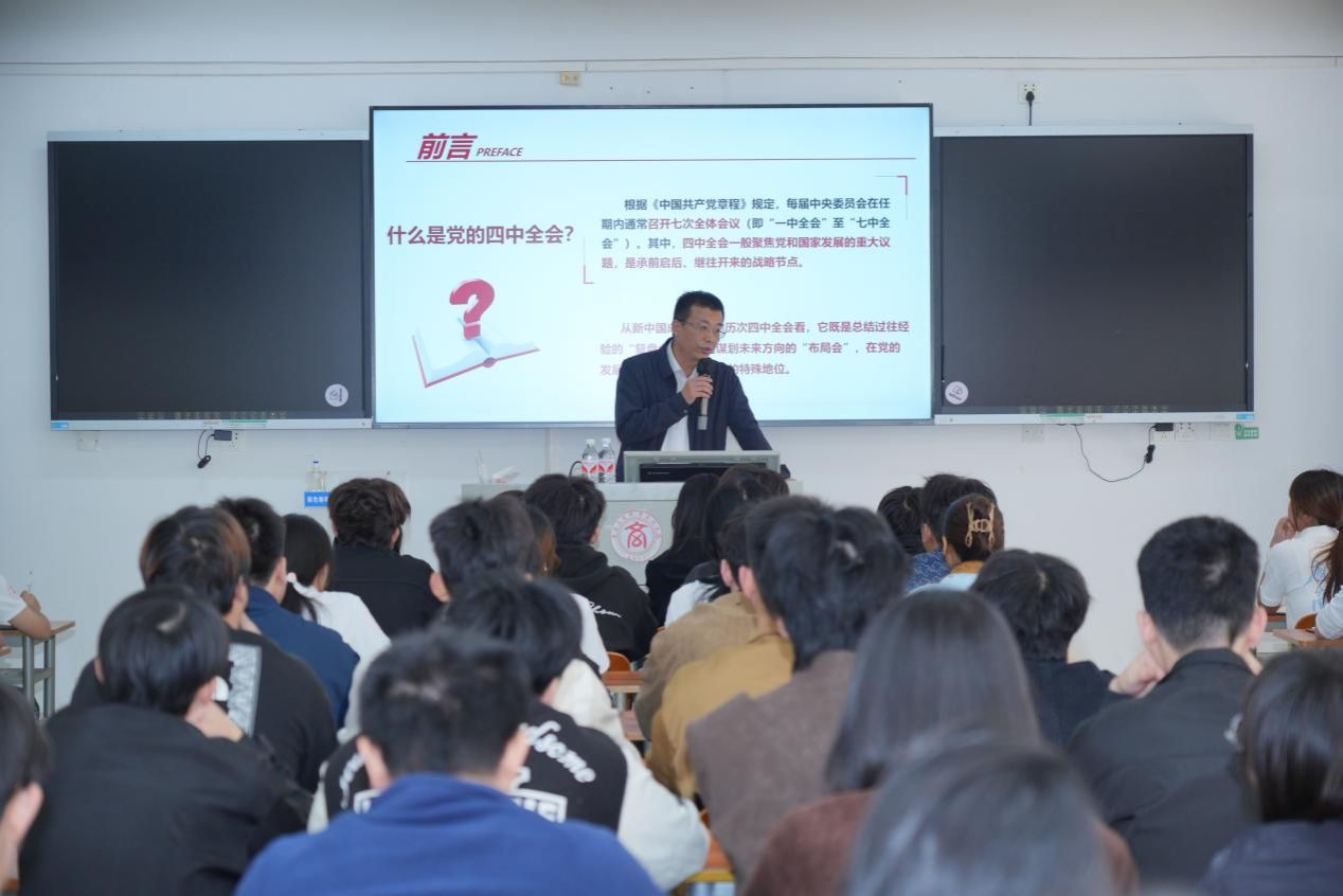 宣講伊始,劉進(jìn)校長為同學(xué)們梳理了從新中國成立以來的歷次四中全會及不可替代的特殊地位,并強(qiáng)調(diào)不久前勝利閉幕的黨的二十屆四中全會,是在“十四五”規(guī)劃即將收官、“十五五”規(guī)劃即將啟幕的關(guān)鍵時刻召開的一次重要會議。