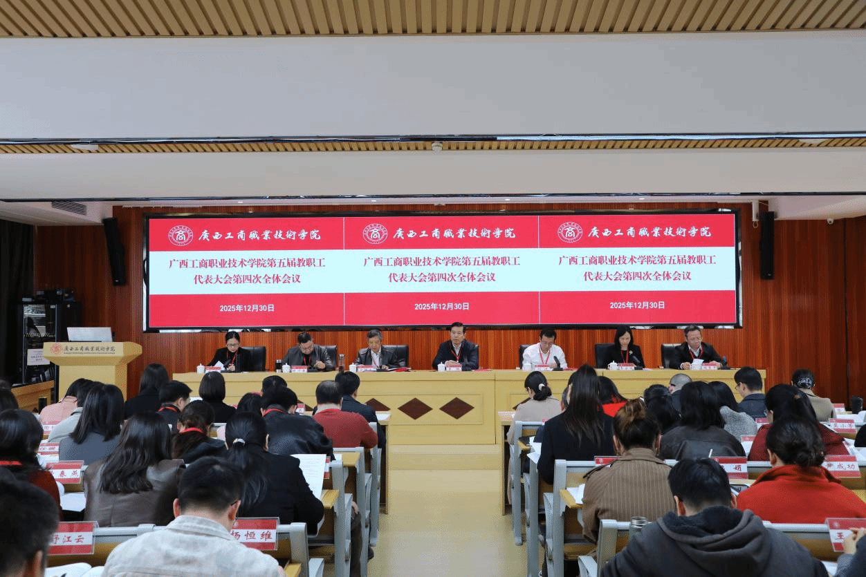 12月30日,學(xué)校在鵬飛校區(qū)召開第五屆教職工代表大會(huì)第四次全體會(huì)議。學(xué)校黨委書記李維,黨委副書記、校長劉進(jìn),黨委副書記安仲文,黨委副書記、紀(jì)委書記韋云鳳,副校長陳寧春,副校長闕勇平,副校長鄭華,來自全校各部門各單位的教代會(huì)代表、列席人員參加會(huì)議。