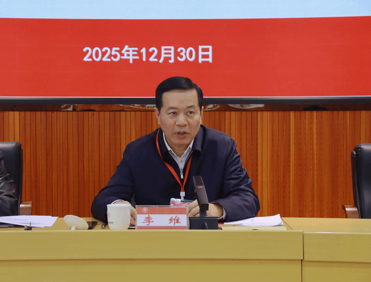 李維在閉幕會(huì)上作講話。他指出,本次大會(huì)期間各代表提出了寶貴的意見和建議,體現(xiàn)了全體教職工對(duì)共同發(fā)展學(xué)校事業(yè)的主人翁精神,學(xué)校將始終堅(jiān)持以師生為中心的發(fā)展思想,持續(xù)傾聽群眾意見、響應(yīng)群眾呼聲。為了推動(dòng)歲末年初學(xué)校各項(xiàng)工作的落實(shí),他提出三點(diǎn)要求:一是要抓好收官提質(zhì)與整改落實(shí),嚴(yán)把教學(xué)質(zhì)量、科研成果、管理服務(wù)三道關(guān)口,統(tǒng)籌學(xué)校期末工作,確保本學(xué)期工作圓滿收官;以釘釘子精神推進(jìn)巡視整改、審計(jì)整改各項(xiàng)任務(wù)落地見效。二是要錨定長遠(yuǎn)發(fā)展與規(guī)劃編制,立足學(xué)校發(fā)展全局,抓緊謀劃明年重點(diǎn)工作、編制“十五五”規(guī)劃。三是要深化作風(fēng)建設(shè)與安全保障,持續(xù)深化作風(fēng)建設(shè)和師德師風(fēng)建設(shè),以優(yōu)良作風(fēng)引領(lǐng)校風(fēng)學(xué)風(fēng)。全校上下要繃緊安全穩(wěn)定弦,切實(shí)扛起安全主體責(zé)任。