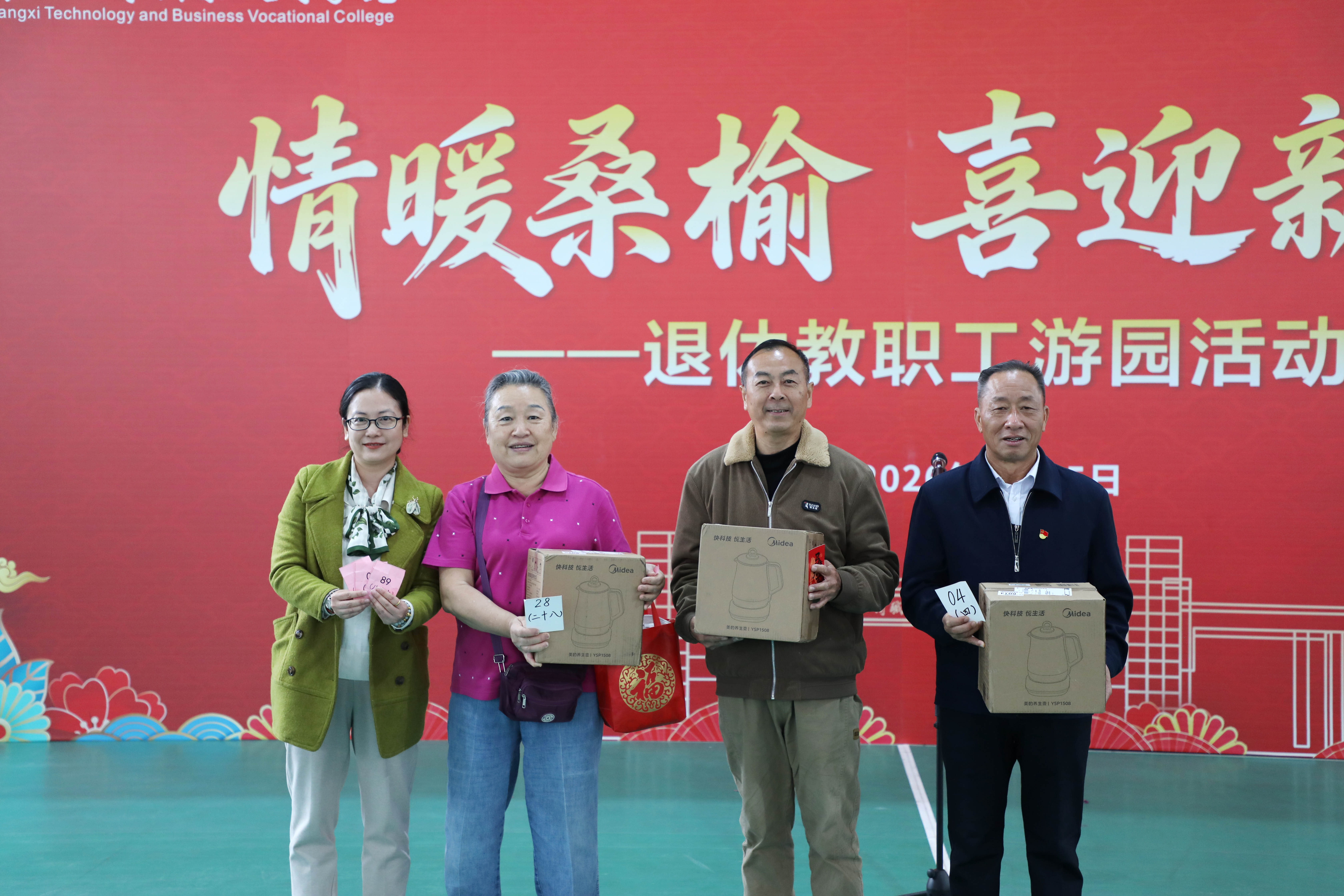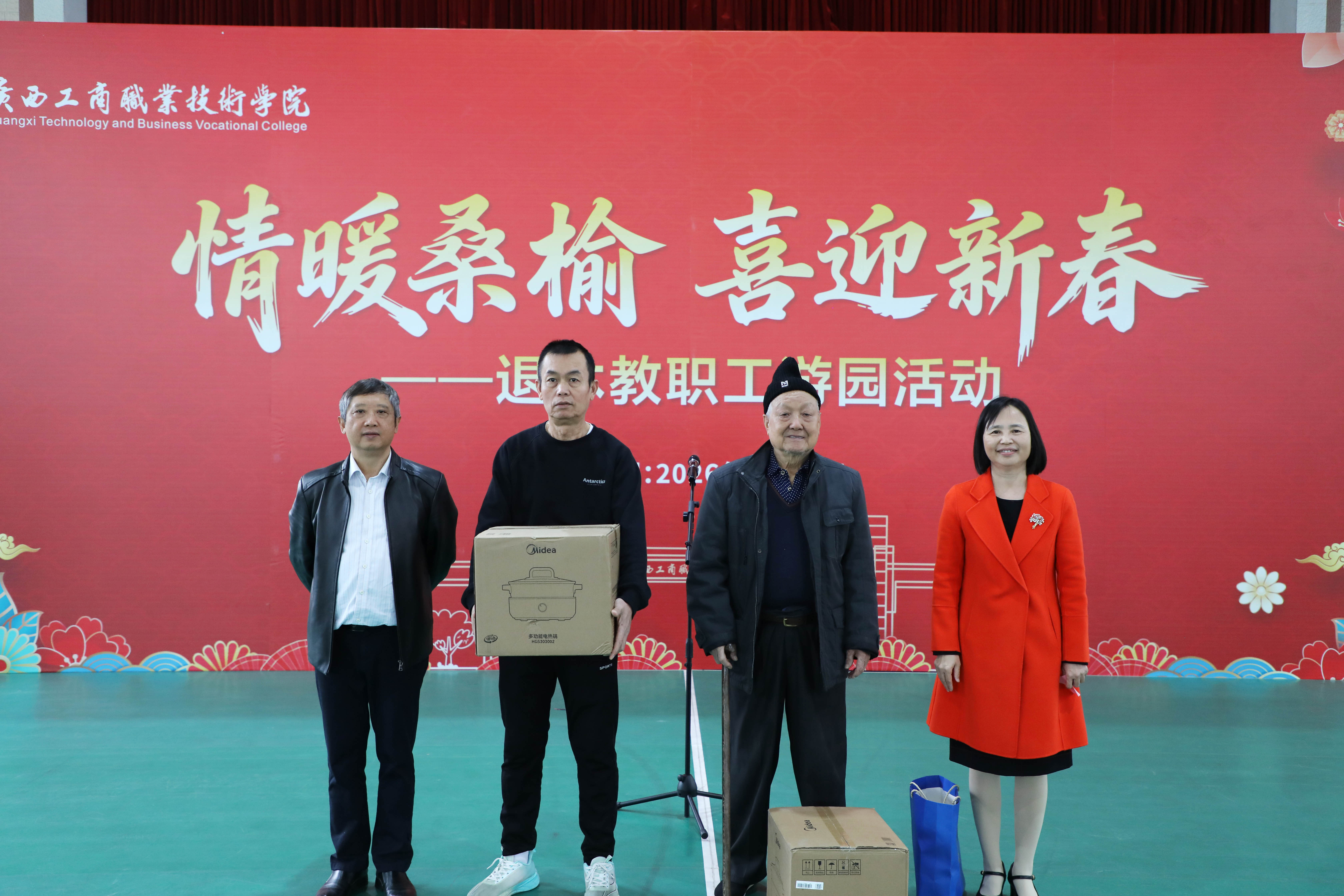 為豐富校園文化活動,向我校退休教職工送上美好新年祝福,1月15日,學(xué)校在中堯校區(qū)舉辦2026年退休教職工游園活動。學(xué)校黨委書記李維,黨委副書記、校長劉進,黨委副書記、工會主席安仲文,黨委副書記、紀委書記韋云鳳,副校長鄭華出席活動。游園活動由安仲文主持。