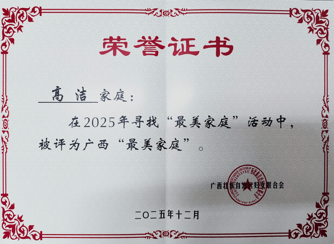 近日,2025年廣西最美家庭名單正式發(fā)布,99戶家庭獲此殊榮。我校教師高潔家庭榮獲廣西“最美家庭”稱號。