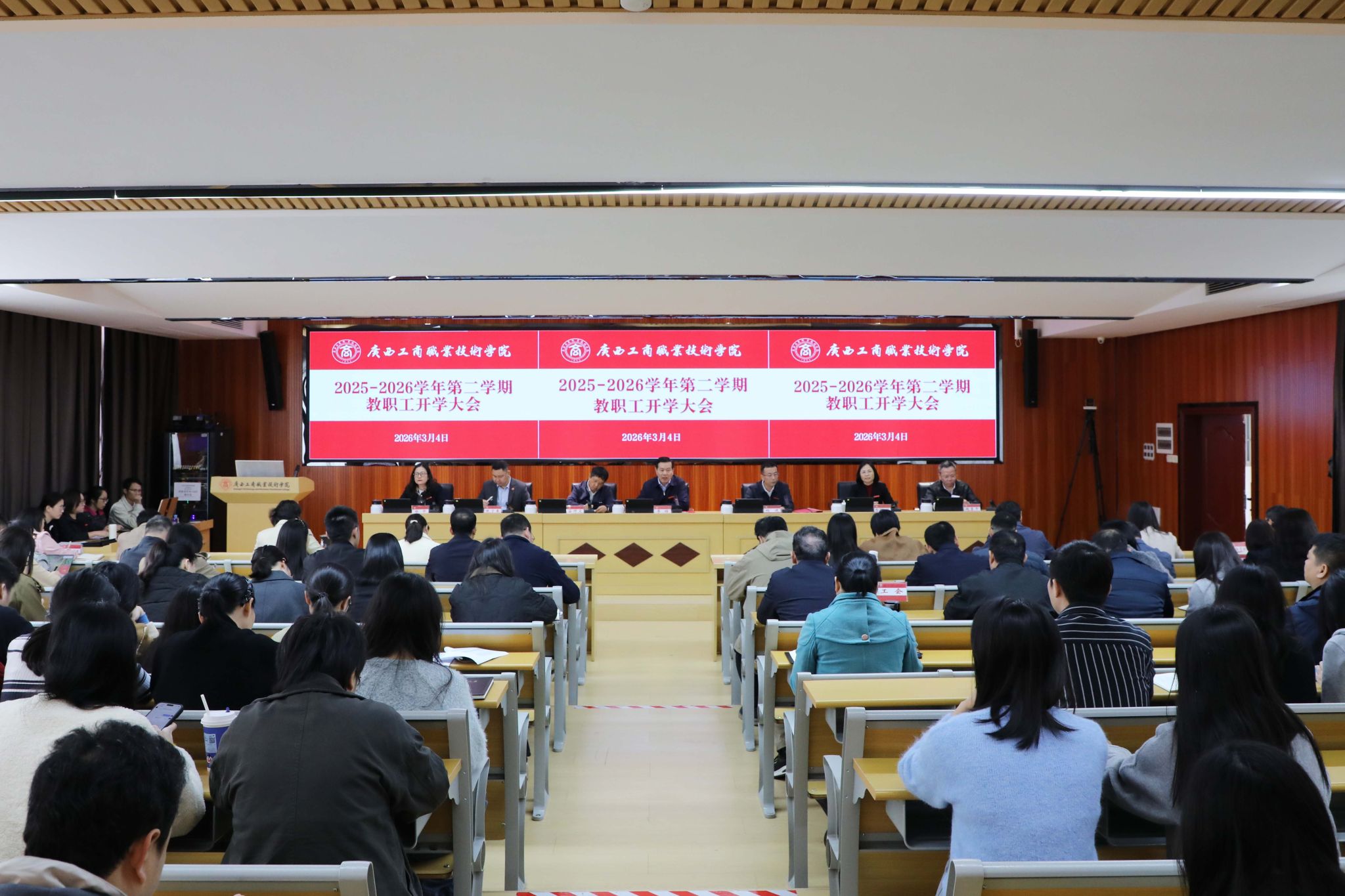 春?jiǎn)⑿鲁?,萬象更新。3月4日,學(xué)校召開2025—2026學(xué)年第二學(xué)期開學(xué)大會(huì),部署新學(xué)期學(xué)校改革發(fā)展的新目標(biāo)和新任務(wù)。全體學(xué)校領(lǐng)導(dǎo)、中層領(lǐng)導(dǎo)干部、部分職能部門教職工在主會(huì)場(chǎng)參會(huì),其余教職工在分會(huì)場(chǎng)參會(huì)。學(xué)校黨委書記李維主持大會(huì),校長(zhǎng)劉進(jìn)作寒假工作總結(jié)報(bào)告。