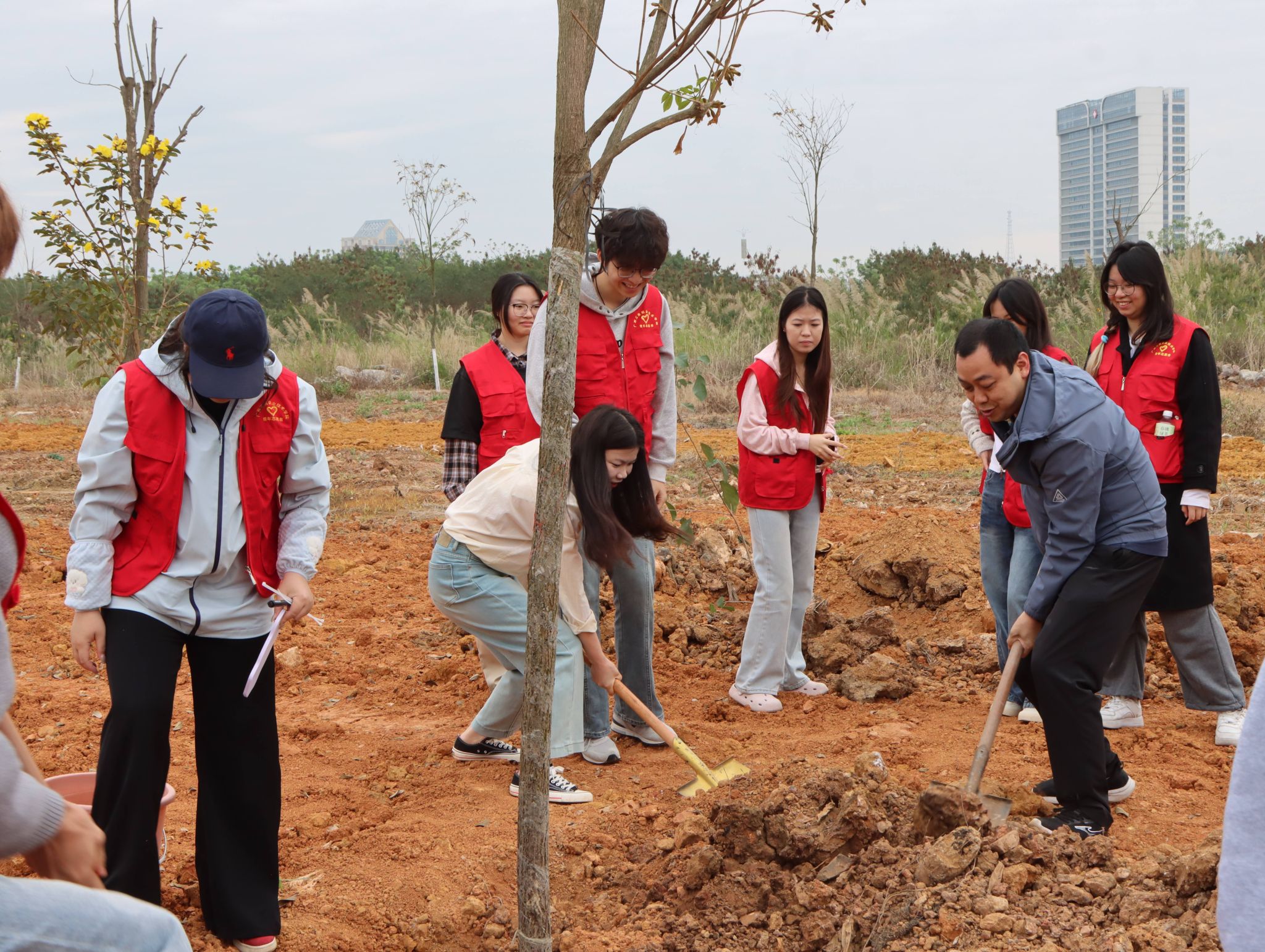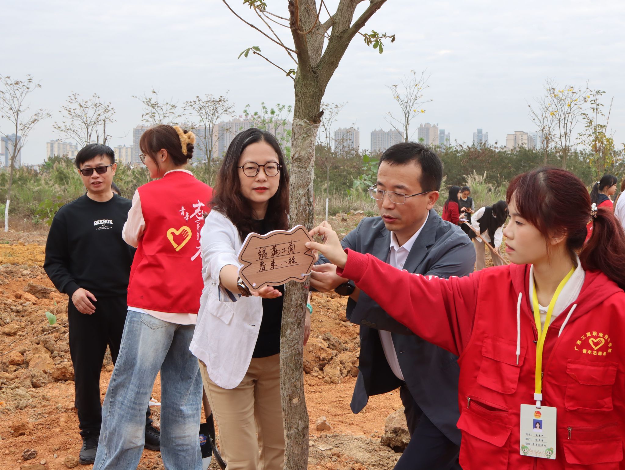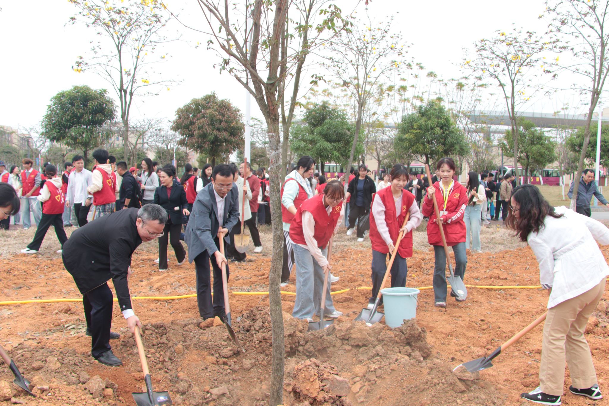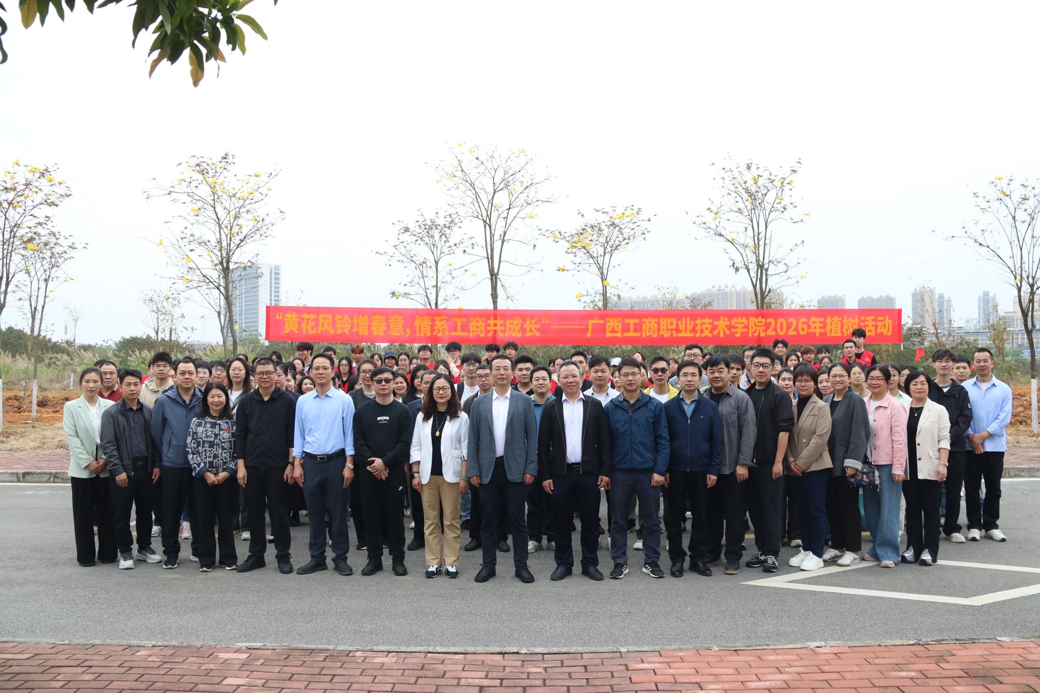 春回大地,萬象更新。為深入貫徹習近平生態(tài)文明思想,落實國家和自治區(qū)有關部署要求,進一步優(yōu)化校園生態(tài)環(huán)境,踐行綠色發(fā)展理念,3月18日,我校在武鳴校區(qū)開展2026年植樹活動。學校黨委副書記、校長劉進,副校長闕勇平、鄭華,各部門、各二級學院師生代表共同參加活動。