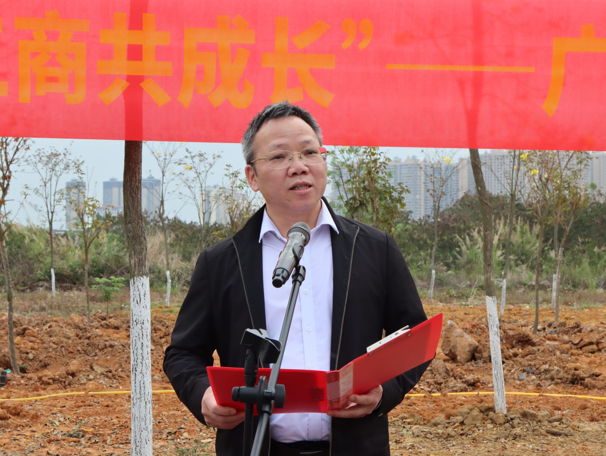 劉進在致辭中指出,生態(tài)文明建設是新時代的重要使命,校園綠化是學校辦學理念的生動體現(xiàn)。此次植樹活動,既是我校落實國家生態(tài)文明建設部署的具體實踐,也是優(yōu)化校園生態(tài)環(huán)境的重要舉措。他倡導全體師生厚植綠色發(fā)展理念,養(yǎng)成愛護環(huán)境、節(jié)約資源的良好習慣,讓護綠、愛綠、植綠成為自覺行動,并祝愿新栽樹苗茁壯成長,校園綠意盎然、生機勃發(fā)。