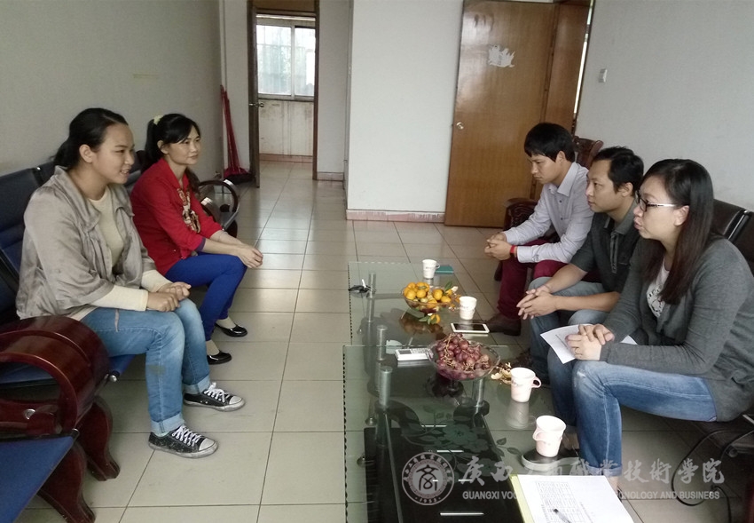 頂崗實(shí)習(xí)檢查小組與葉瓊蓮經(jīng)理和實(shí)習(xí)生李林燕交流座談