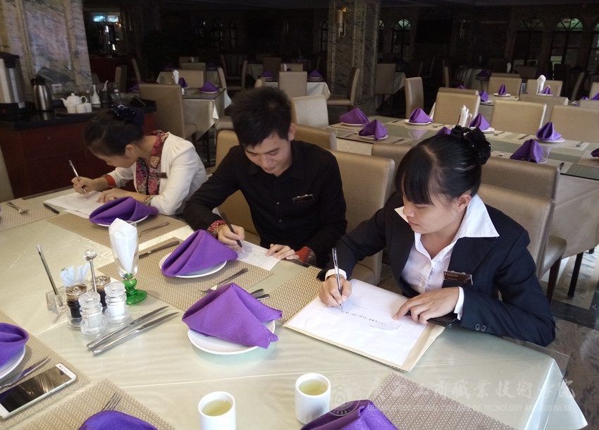 酒店何秀嬌經(jīng)理和實(shí)習(xí)生吳秋良、黃金玲填寫調(diào)查問卷