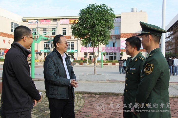 蒙啟成副書記與武警廣西總隊直屬支隊政治處副主任楊和奎等領導進行交談