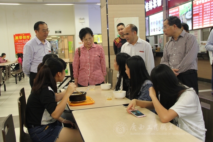 在聽取我院匯報(bào)后,秦敬德副書記作了講話。她認(rèn)為,我院新學(xué)期開學(xué)工作準(zhǔn)備充分,井然有序,教學(xué)秩序運(yùn)轉(zhuǎn)正常。她指出,高校要認(rèn)真學(xué)習(xí)習(xí)近平總書記系列重要講話精神,貫徹落實(shí)黨的十八屆三中、四中全會(huì)精神,貫徹落實(shí)好“四個(gè)全面”的戰(zhàn)略布局,貫徹落實(shí)好自治區(qū)關(guān)于高校黨建工作和高等教育綜合改革的決策要求,推進(jìn)依法治校,加快教育現(xiàn)代化進(jìn)程。她要求我院繼續(xù)打造辦學(xué)特色,發(fā)展優(yōu)勢(shì)專業(yè),準(zhǔn)確辦學(xué)定位,充分利用行業(yè)優(yōu)勢(shì)。學(xué)院黨委要從嚴(yán)管理,抓好班子,帶好隊(duì)伍。同時(shí),還要擔(dān)負(fù)黨風(fēng)廉政建設(shè)的主體責(zé)任,從嚴(yán)抓好黨的建設(shè)。秦敬德副書記還深入我院教室、實(shí)訓(xùn)室、學(xué)生公寓、食堂等,實(shí)地查看。