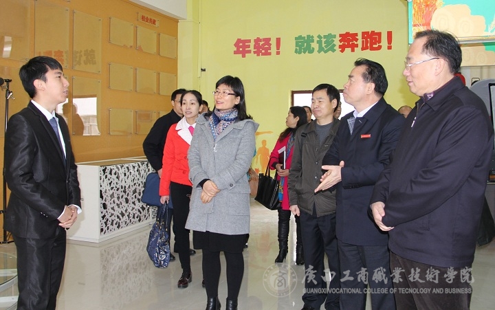 最后,我院領(lǐng)導(dǎo)陪同葛巧紅副局長一行、林愈溪副局長、韋尚英處長、韋濟能處長一同參觀考察了學(xué)院多媒體教室、電子商務(wù)創(chuàng)業(yè)基地、學(xué)生公寓及學(xué)院餐廳等。